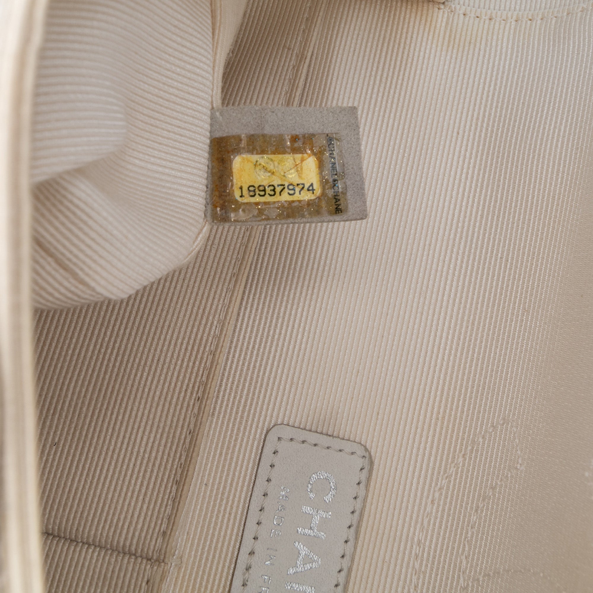 This shoulder bag features a quilted nylon fabric body, a silver-tone fabric woven chain link shoulder straps, double front flaps with a CC turn lock closure, an exterior back slip pocket, and interior zip and slip pockets. Inclusion: Dust bag, authenticity card. Retail Price: 4200.00