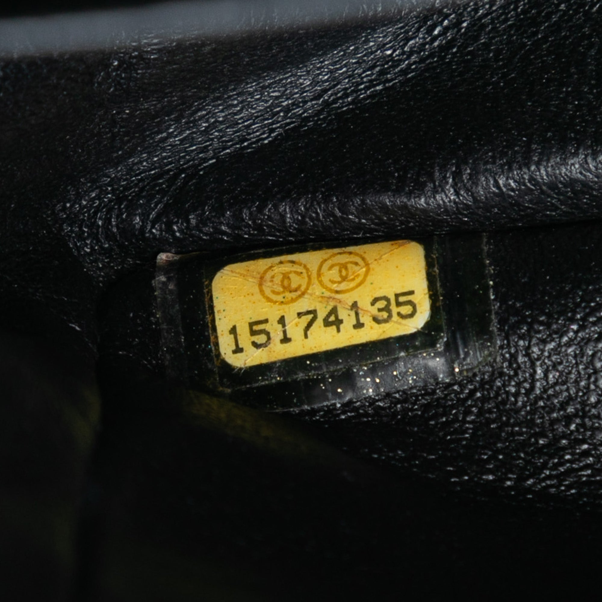 This shoulder bag features a quilted tweed body, leather woven chain-link shoulder straps, front flaps with interlocking Cs and a twist-lock closure, an exterior back slip pocket, and interior zip and slip pockets. Retail Price: 4500.00