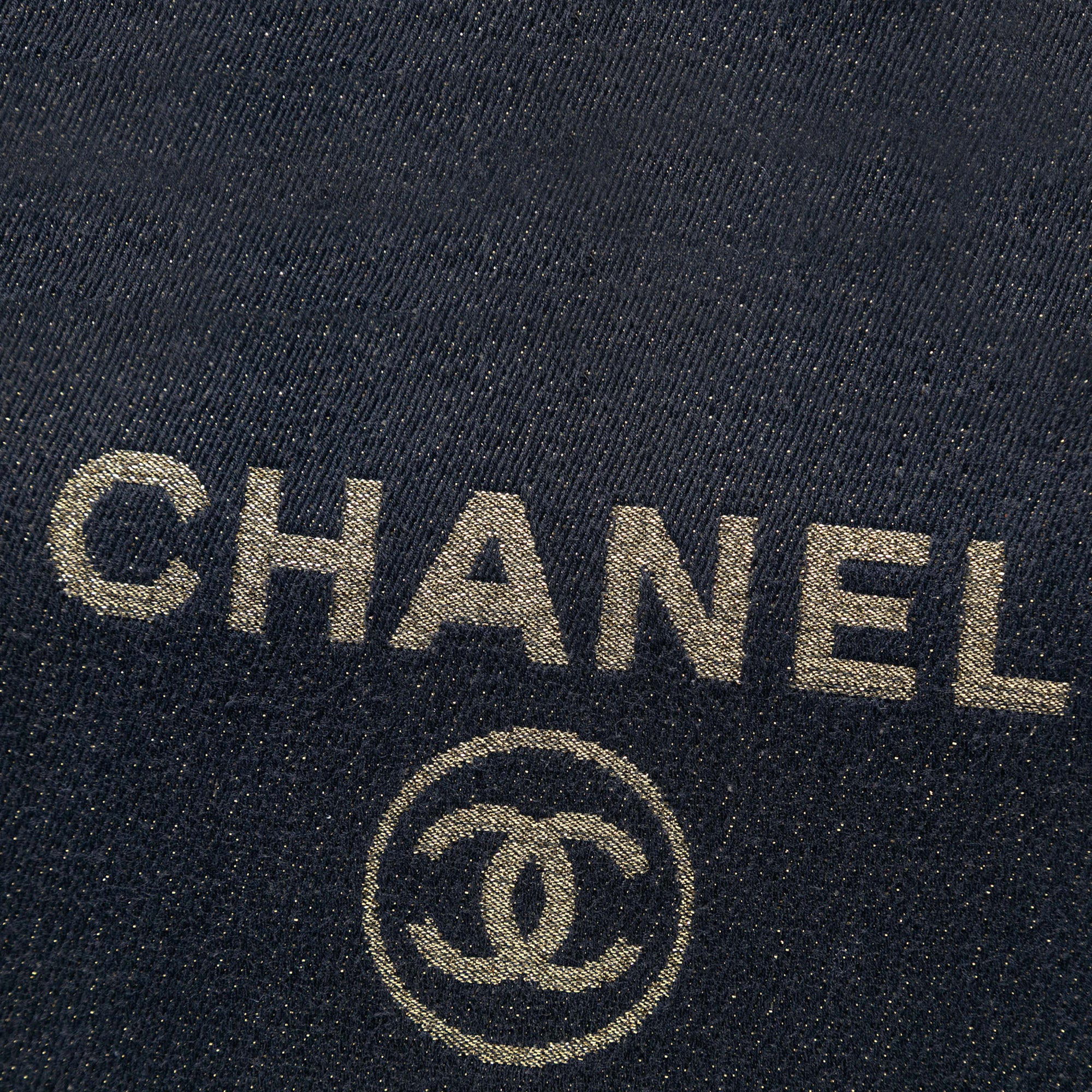 This clutch features a denim body and a top zip closure. Retail Price: 1000.00