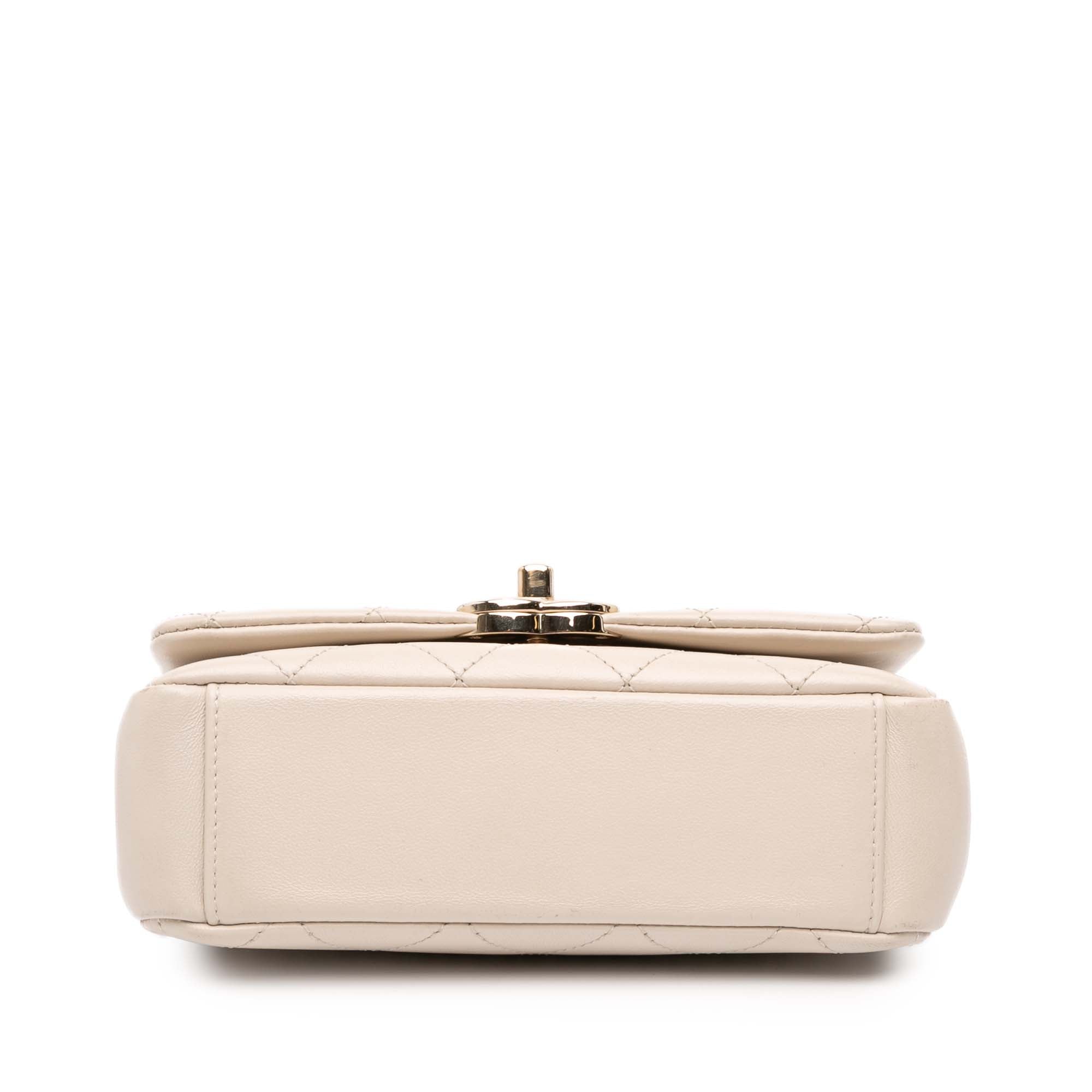 This crossbody bag features a quilted leather body, a leather woven chain shoulder strap with leather guard, a front flap with CC turn-lock closure, and an interior slip pocket. Inclusion: authenticity card. Retail Price: 4500.00