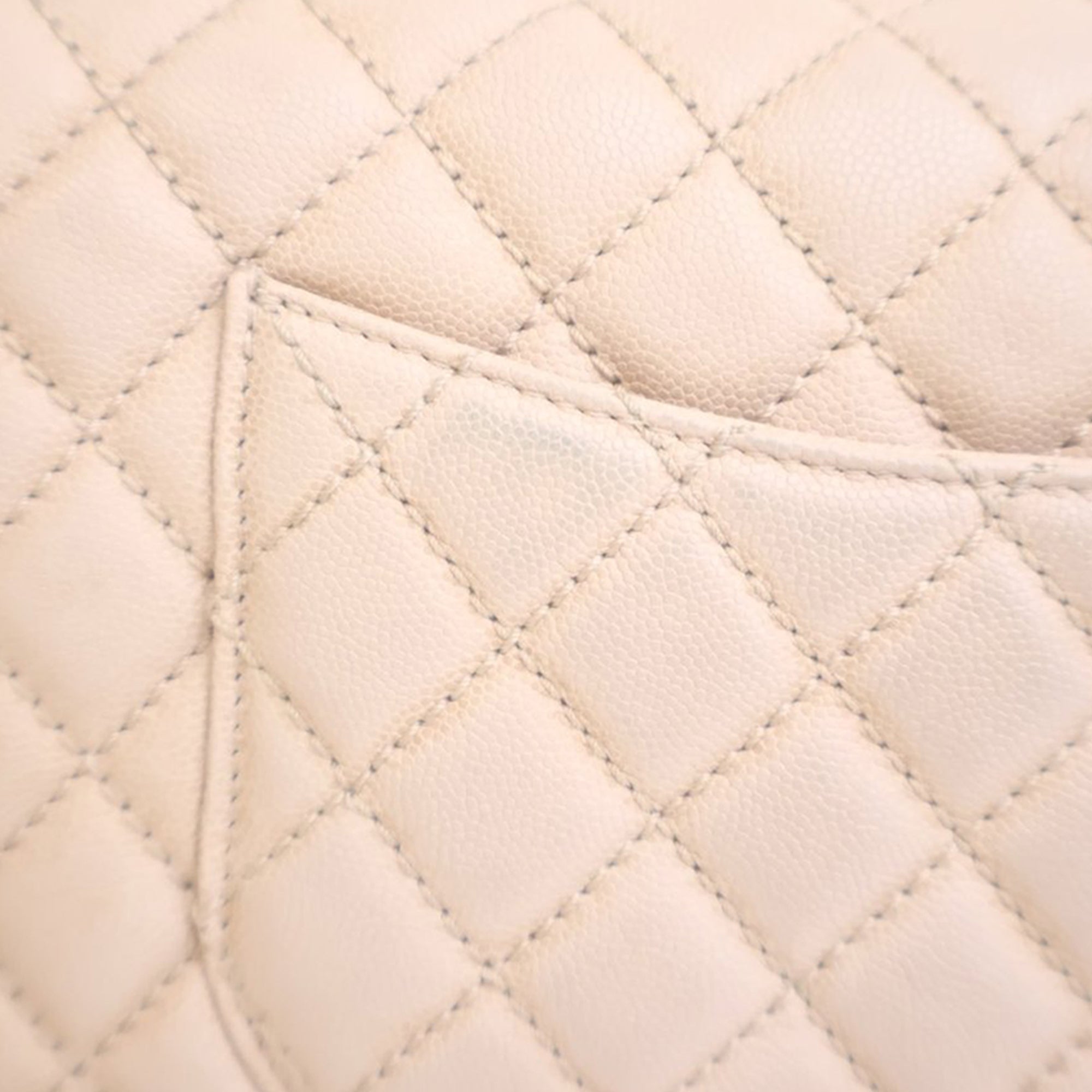 This satchel features a quilted caviar leather body, a rolled top handle, a leather woven chain strap with leather shoulder guard, a top flap with CC turn lock closure, an exterior slip pocket, and interior zip and slip pockets. Inclusion: Dust bag, box, authenticity card. Retail Price: 6500.00