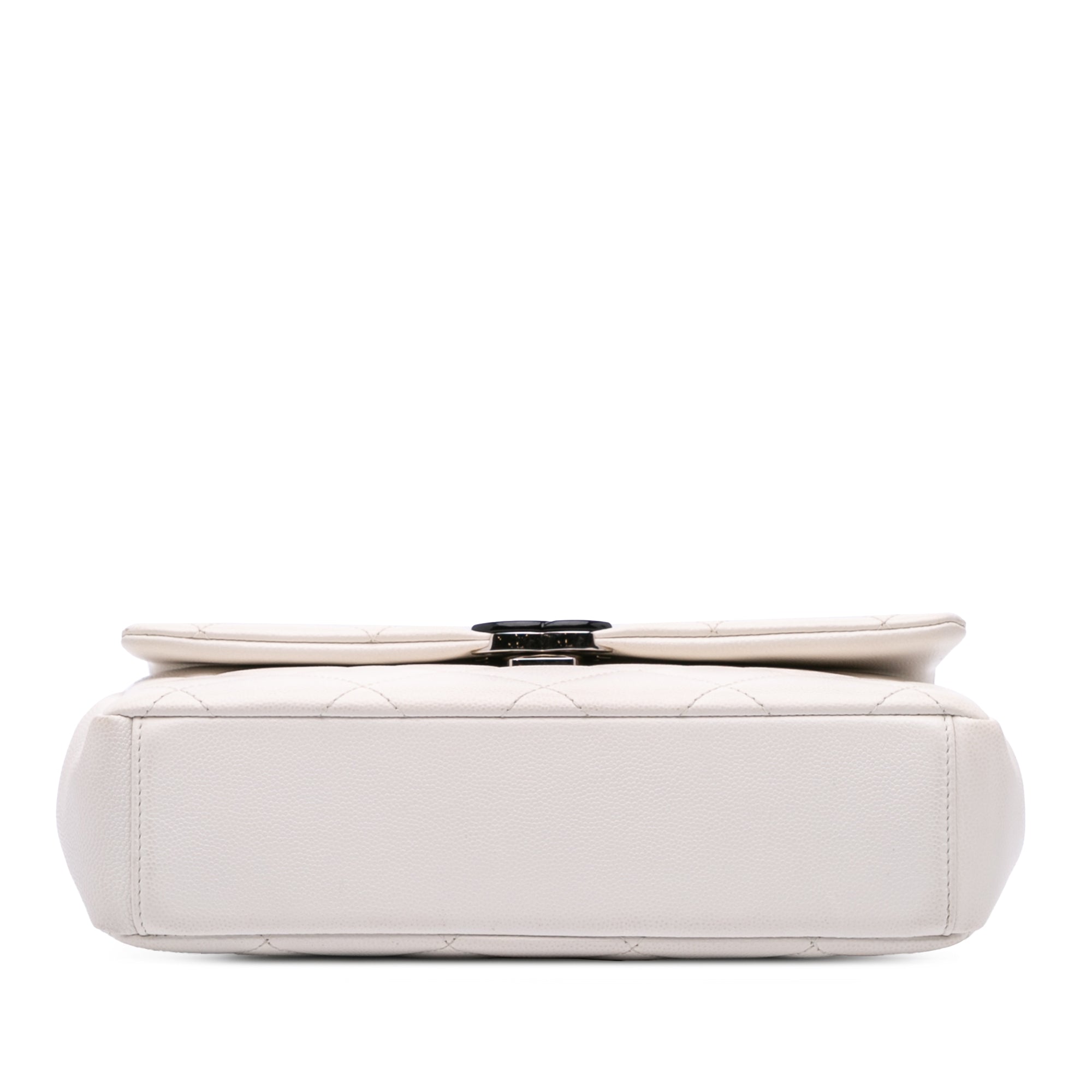 This crossbody bag features a quilted caviar leather body, a leather-woven chain link strap with leather shoulder guard, a front flap with clasp closure, an exterior back slip pocket, and an interior zip pocket. Inclusion: authenticity card. Retail Price: 5500.00