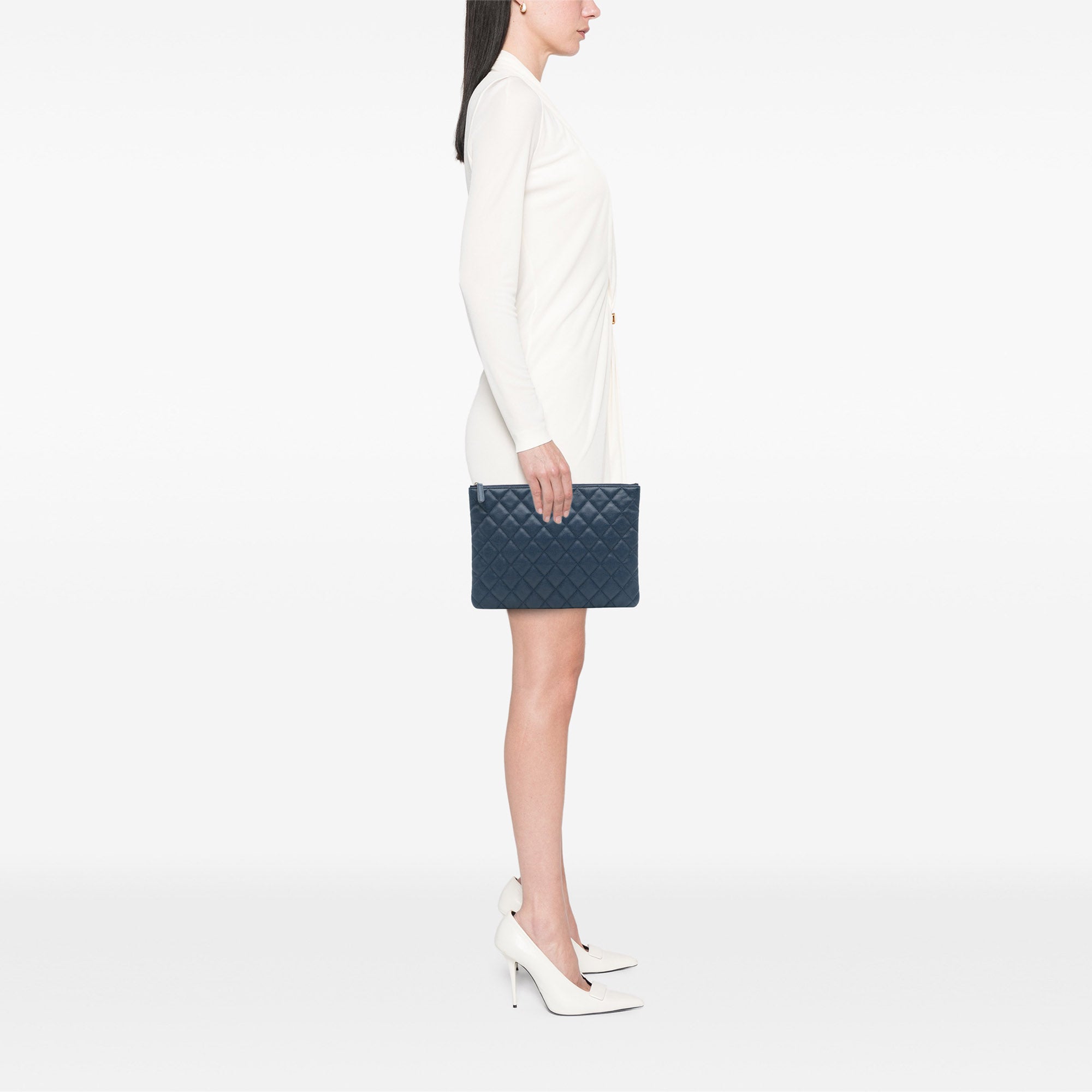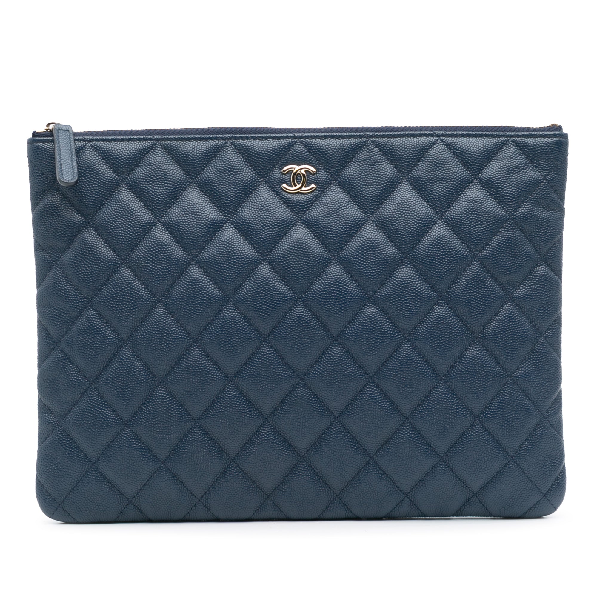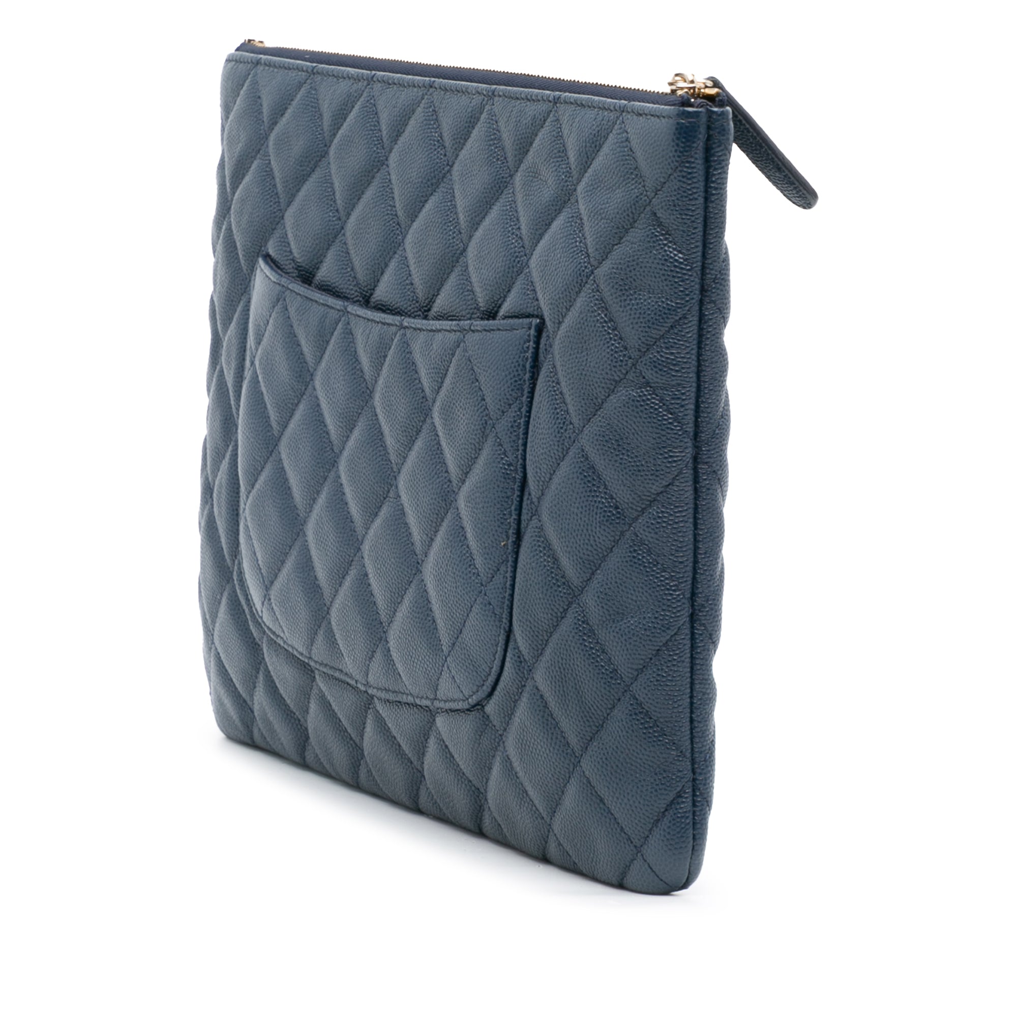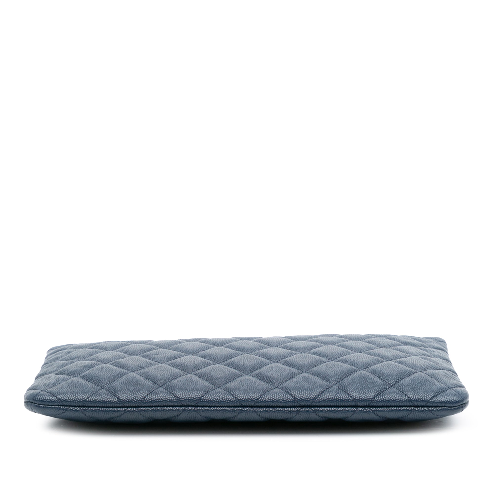 This clutch bag features a quilted caviar leather body, a top zip closure, an exterior back slip pocket, and an interior zip pocket. Inclusion: authenticity card. Retail Price: 1630.00