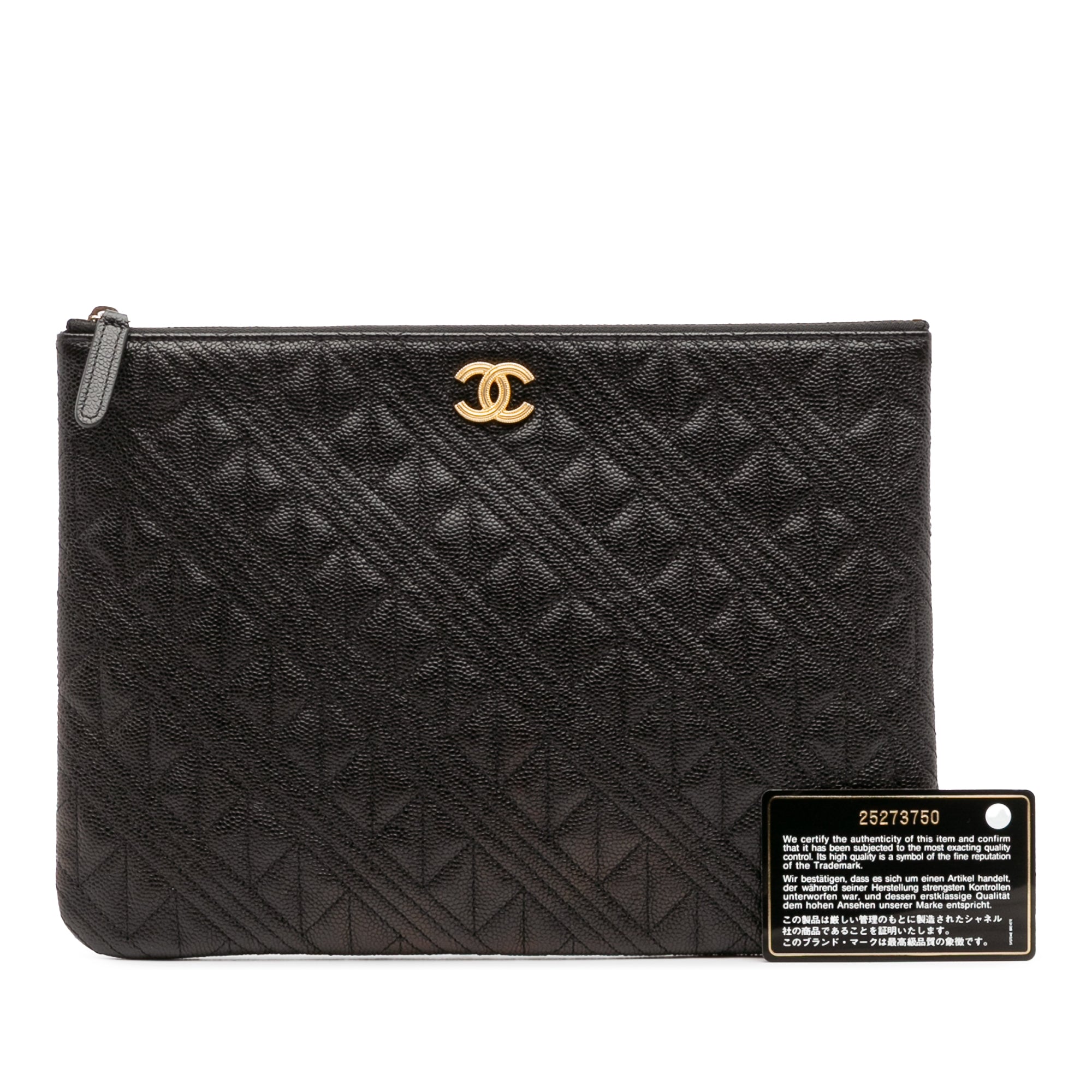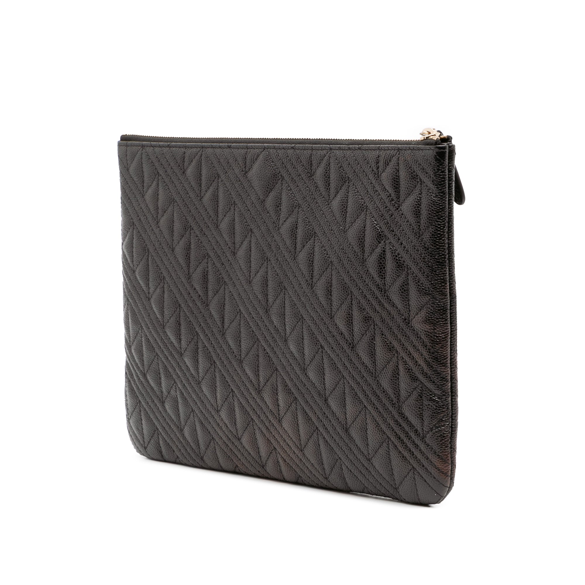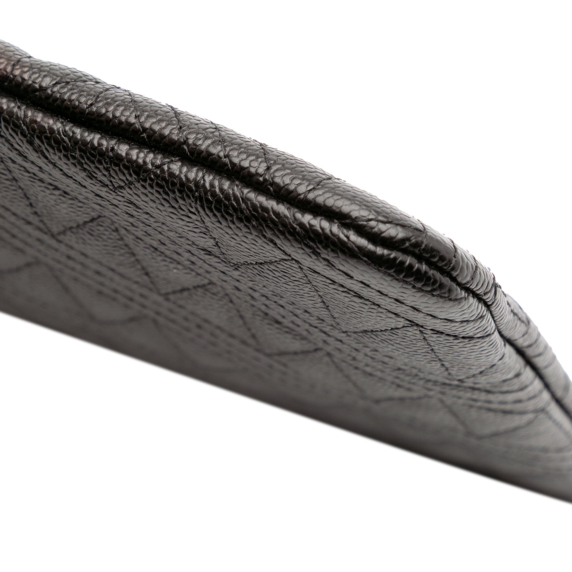 This clutch bag features a quilted caviar leather body and a top zip closure. Inclusion: authenticity card. Retail Price: 1790.00