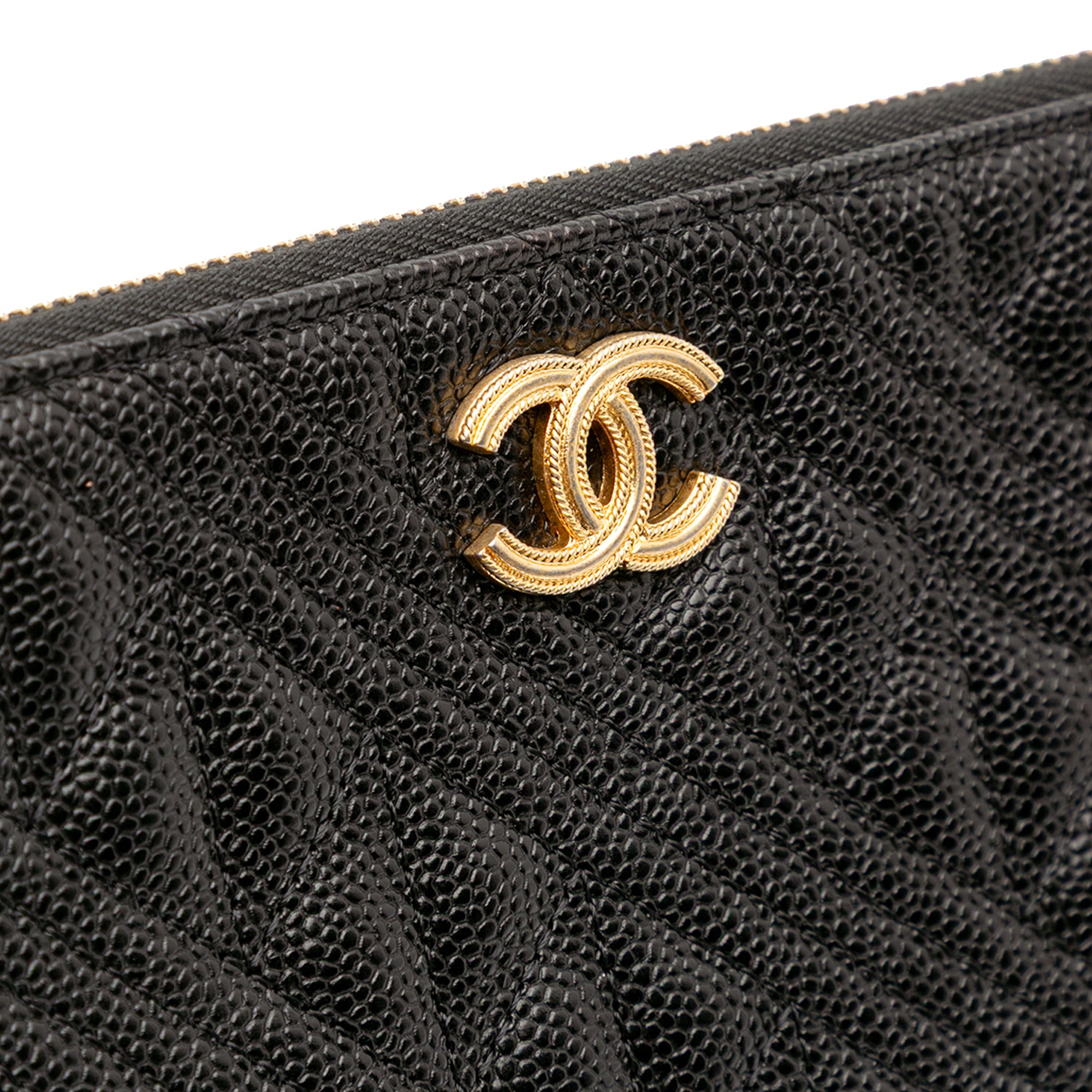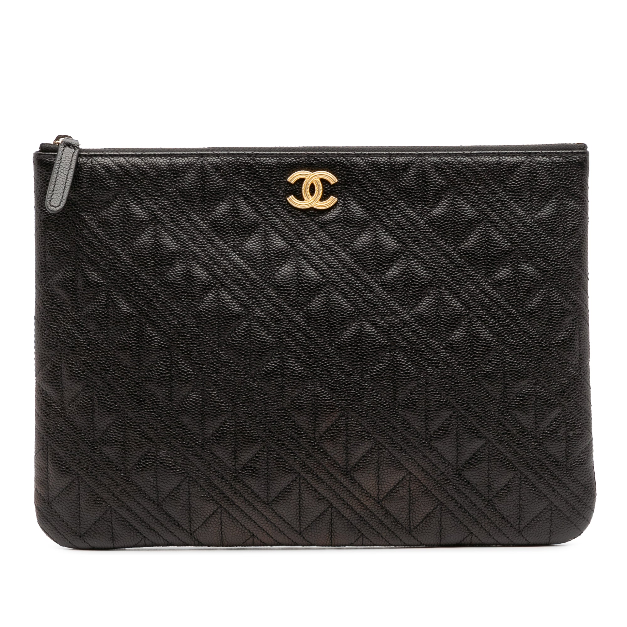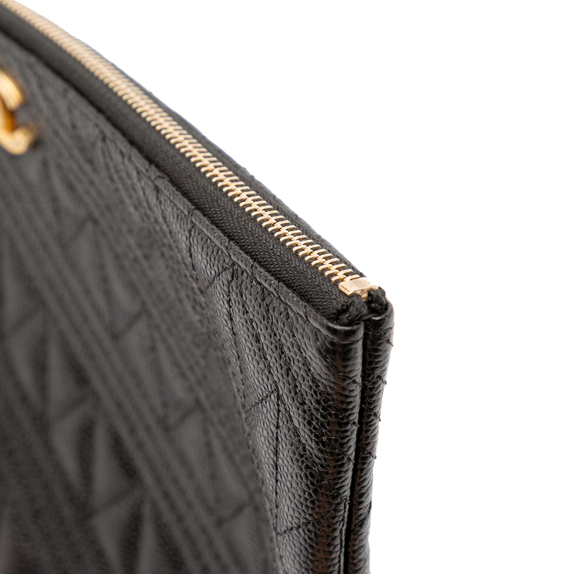 This clutch bag features a quilted caviar leather body and a top zip closure. Inclusion: authenticity card. Retail Price: 1790.00