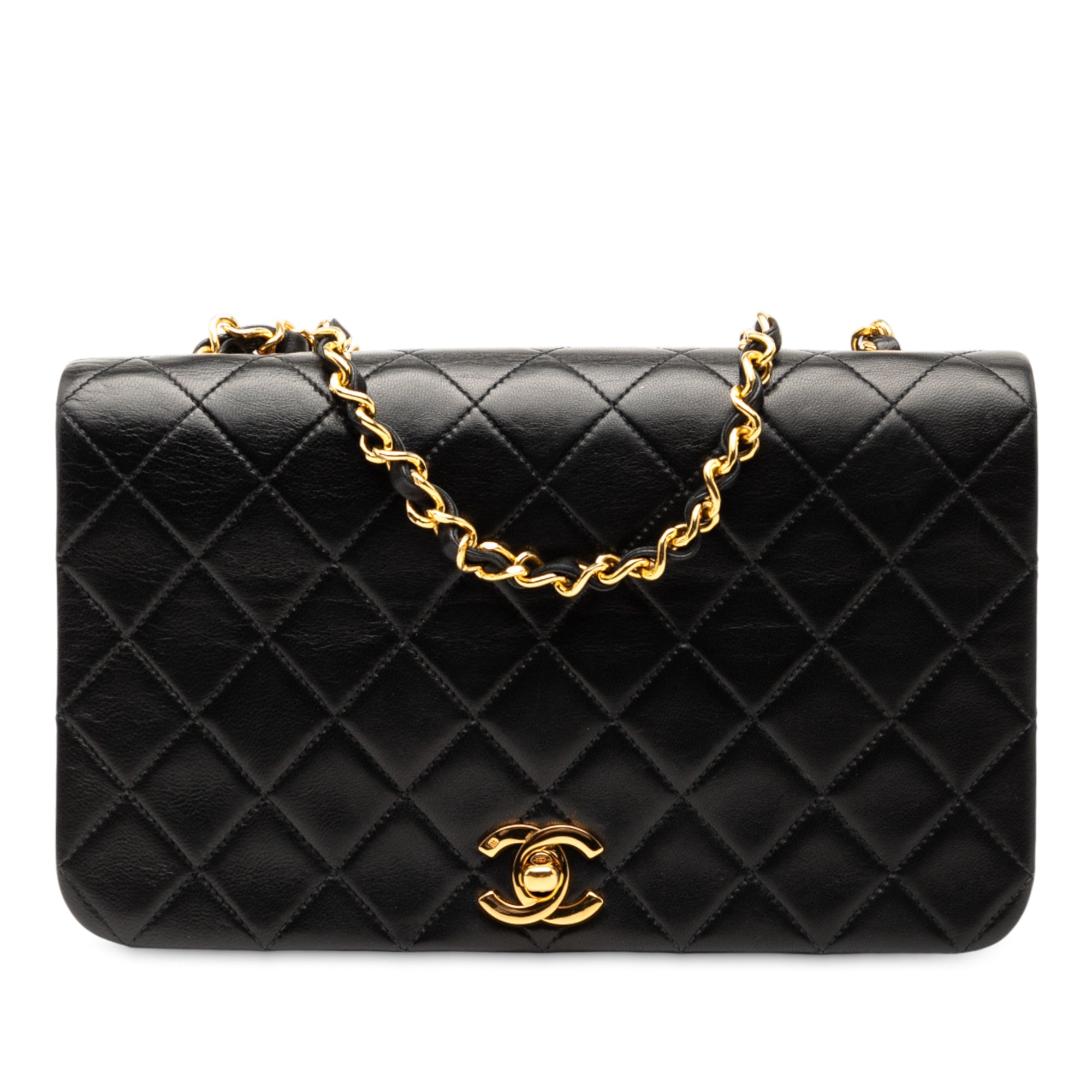 This crossbody bag features a quilted lambskin leather body, a leather woven chain strap, a front flap with CC turn-lock closure, and interior zip and slip pockets. Retail Price: 5000.00
