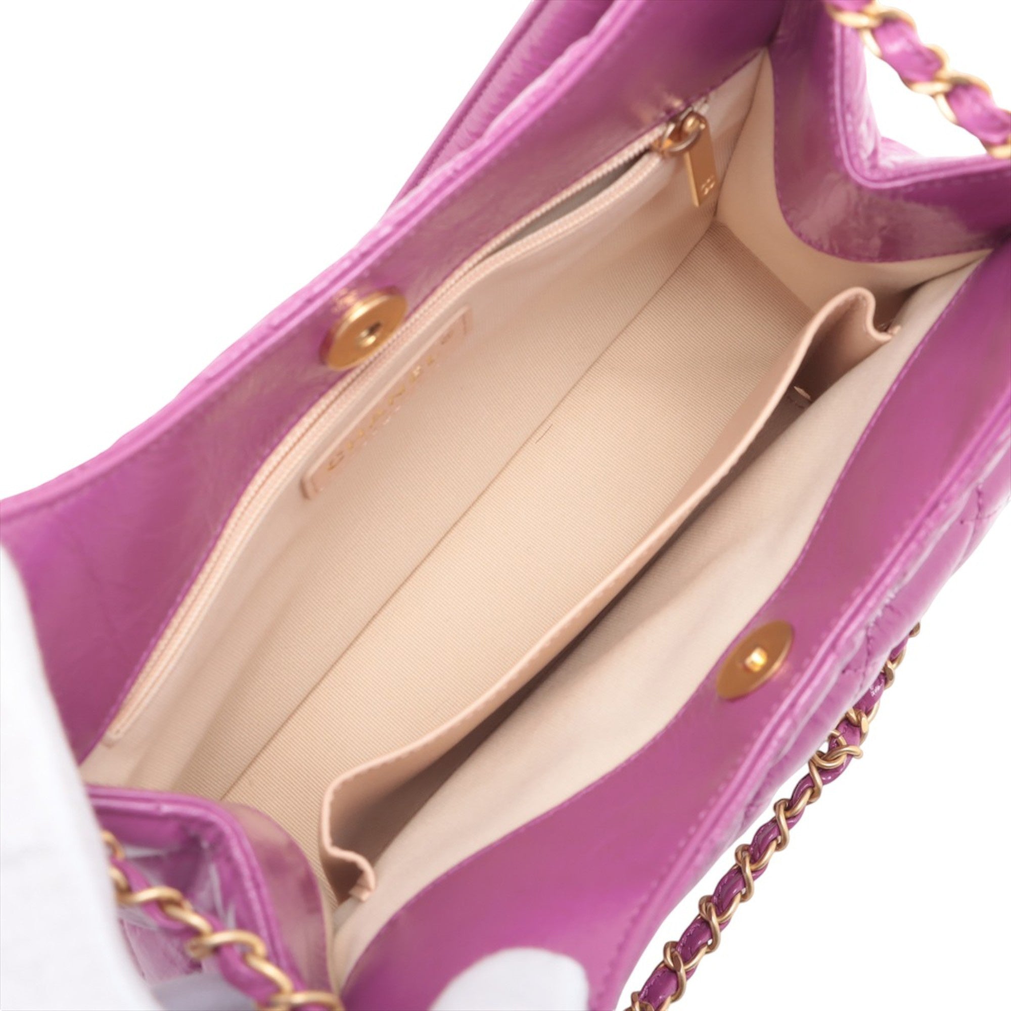 The Wavy features a shiny leather body, leather woven chain link shoulder straps with leather guard, an open top with magnetic snap closure, exterior flap and slip pockets, and interior zip and slip pocket. Retail Price: 5450.00
