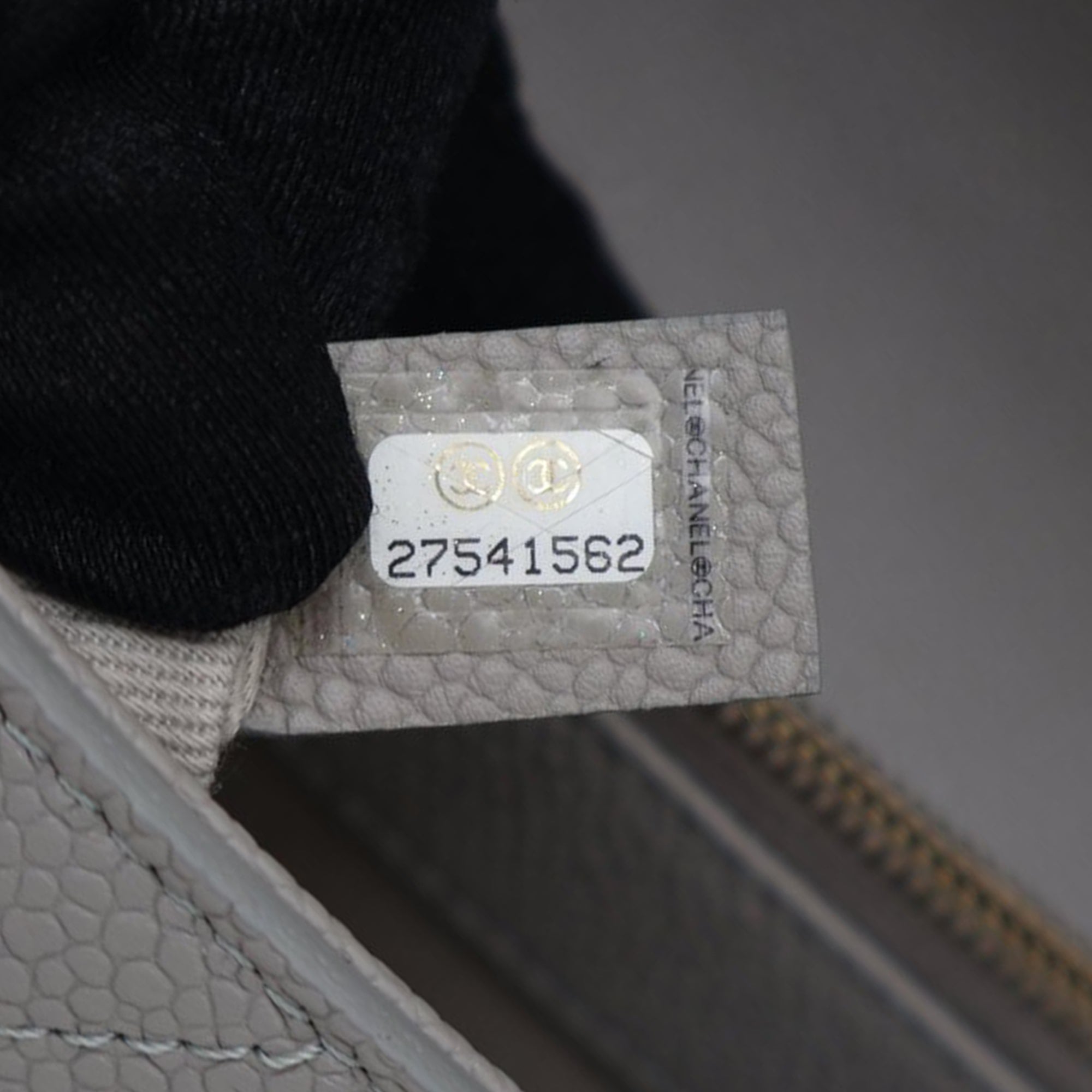This Chic Affinity features a stitched caviar leather body, flat leather top handle, gold-tone chain strap with leather guard, a front flap with turn lock closure, an exterior back slip pocket, and interior zip and slip pockets. Inclusion: Dust bag. Retail Price: 4500.00