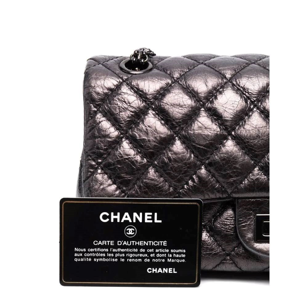 Chanel metallic grey wrinkled style quilted leather shoulder bag. Dark metal front snap lock. Rear patch pocket. Double chain shoulder strap. Three inner wide pockets. Authenticity card. - Code: 12398152 - Year: 2008