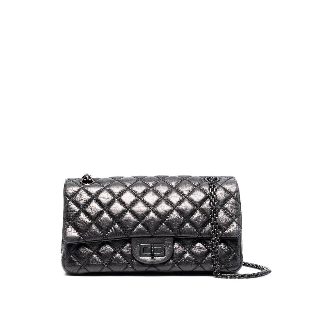 Chanel Metallic Grey Quilted Leather Shoulder Bag - 2000s