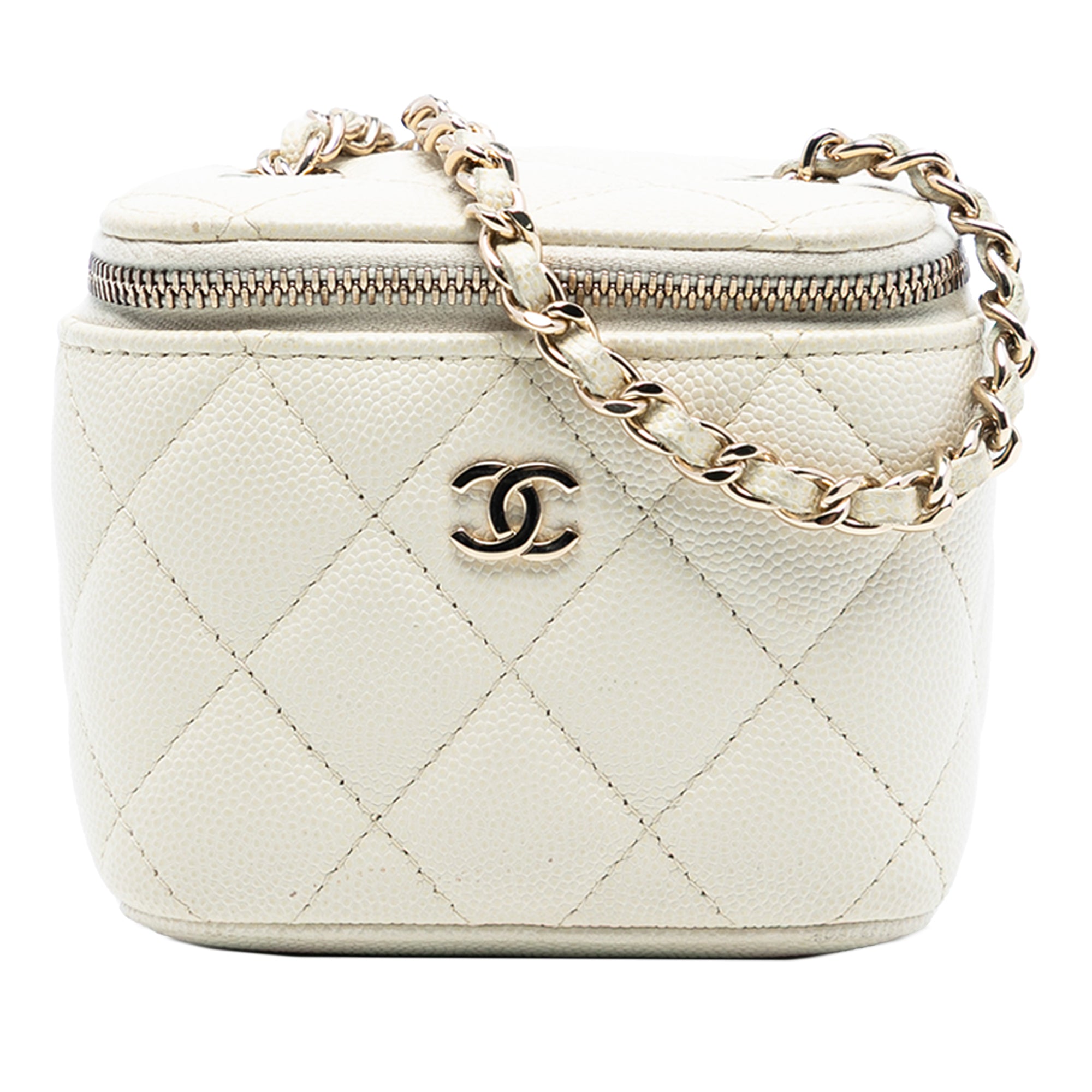 Chanel Mini CC Quilted Caviar Vanity Case with Chain