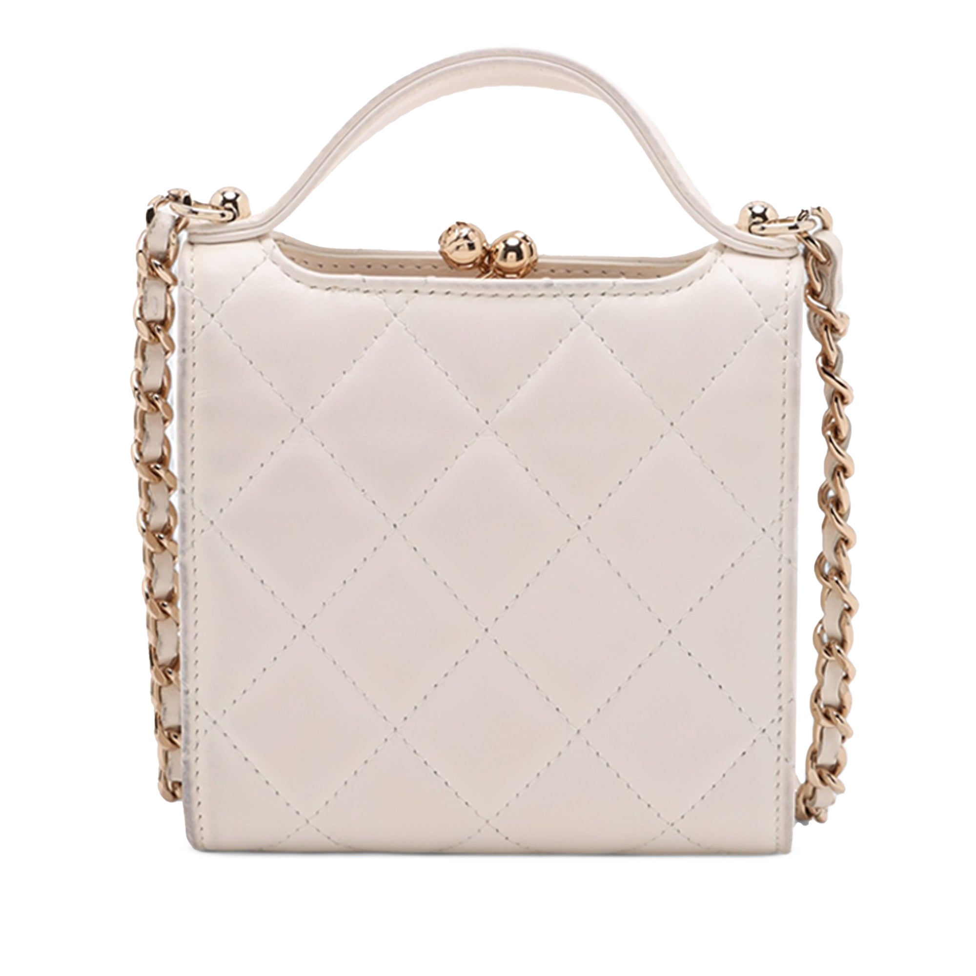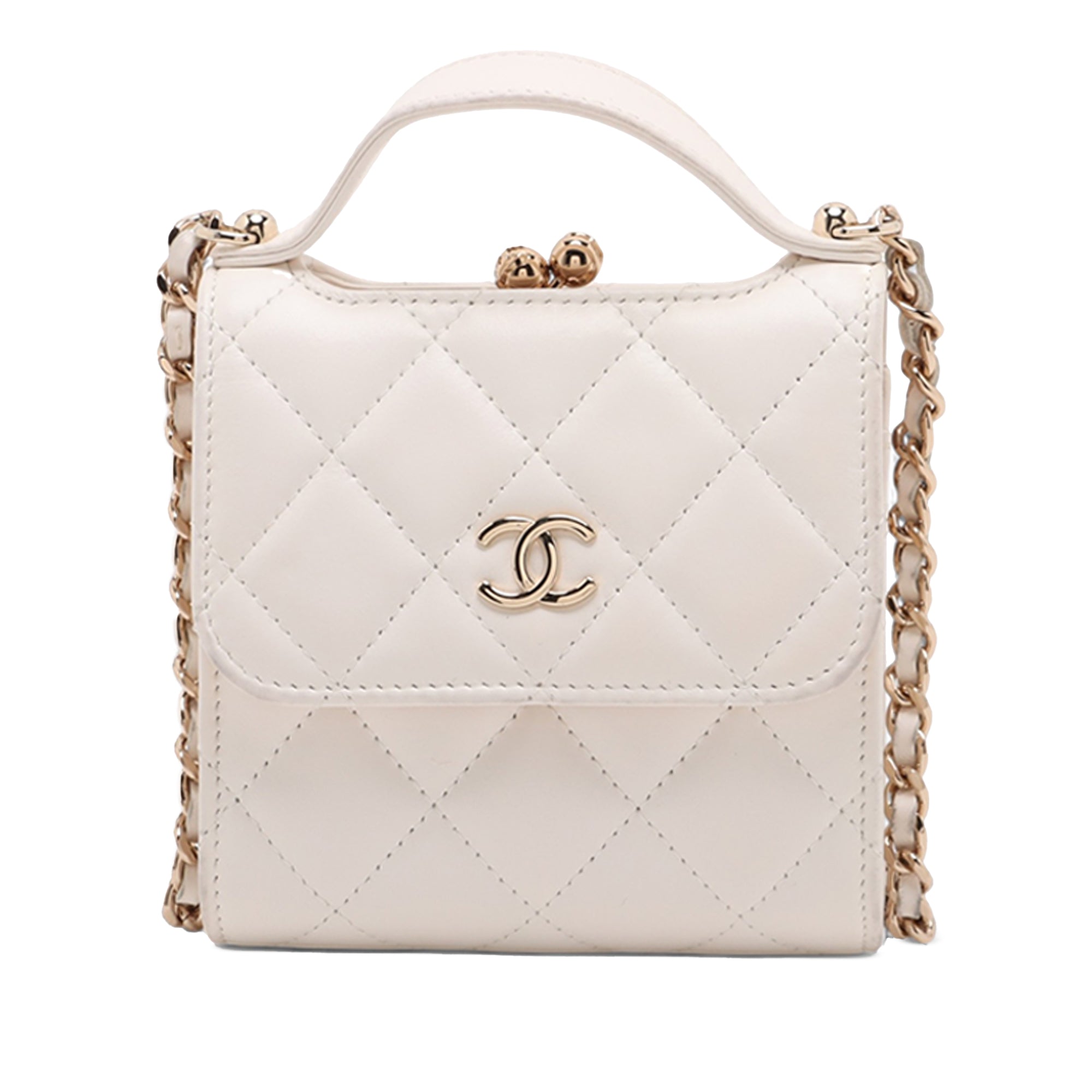 Chanel Mini CC Quilted Lambskin Kiss Lock Frame Top Handle Clutch with Chain