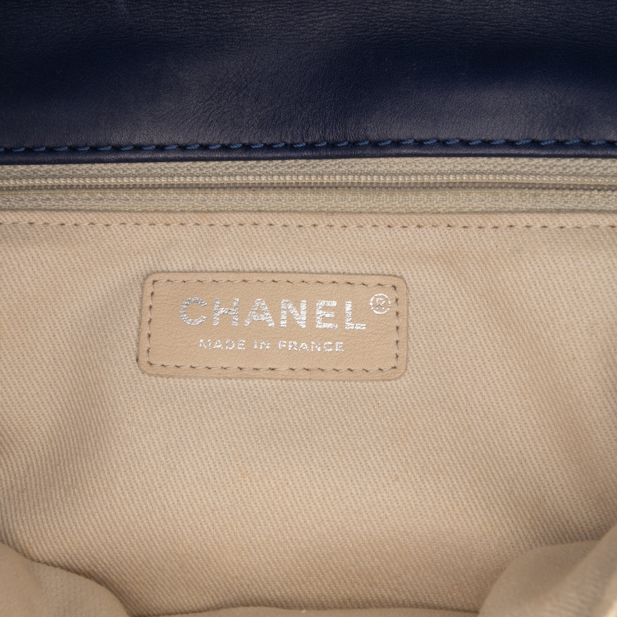 The Mini Double Stitch Hamptons Flap features a quilted leather body, a flat top handle, a woven leather chain strap, a flap with CC and snap closure, and an interior zip pocket. Retail Price: 3500.00