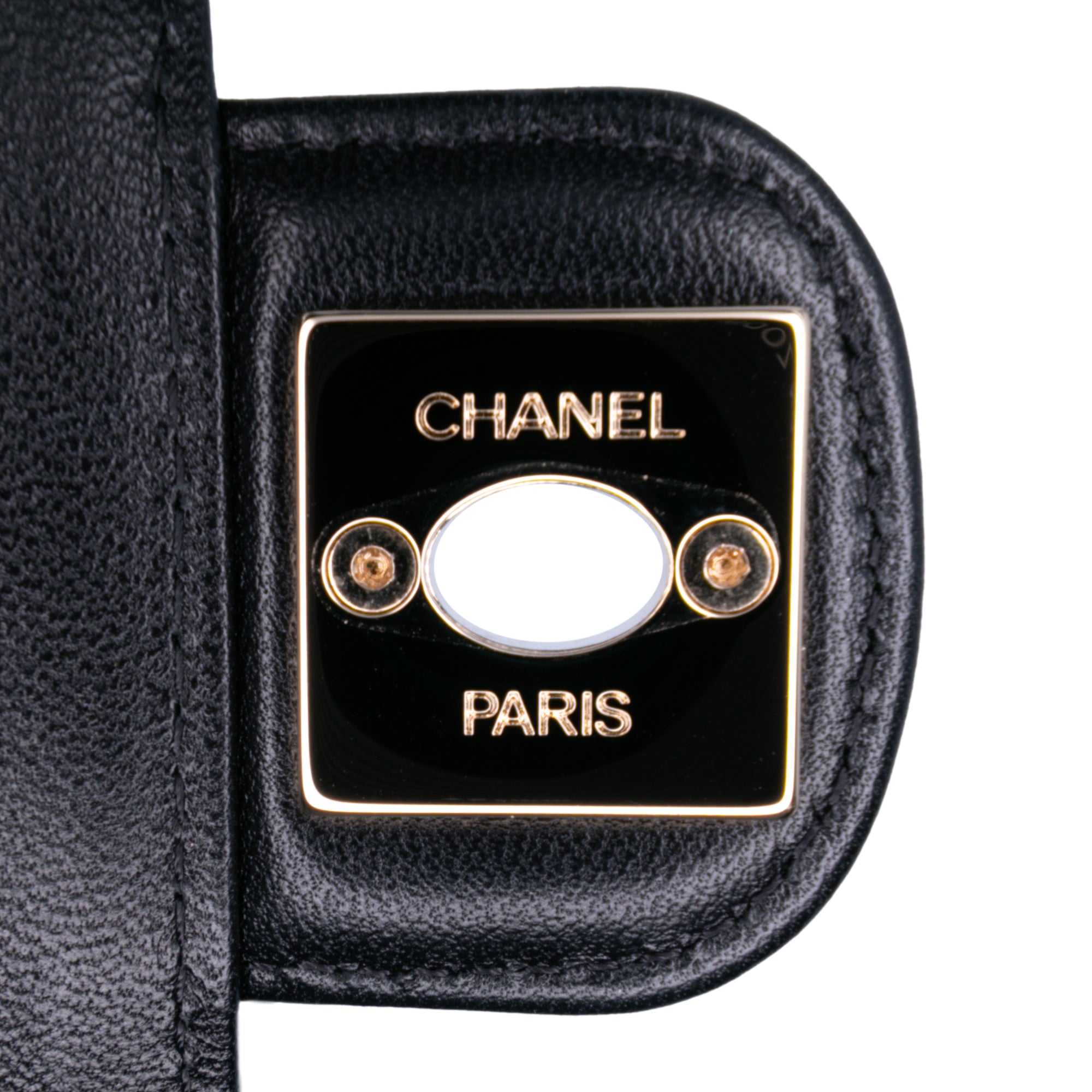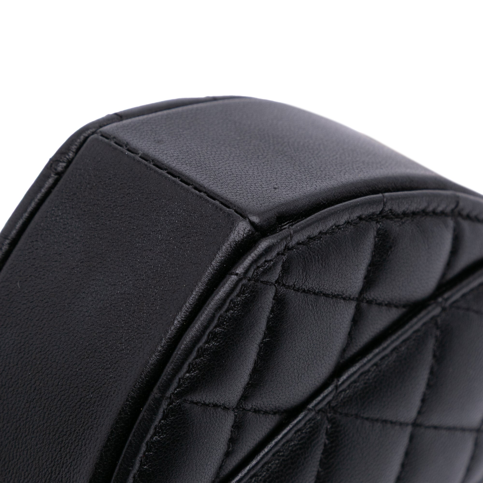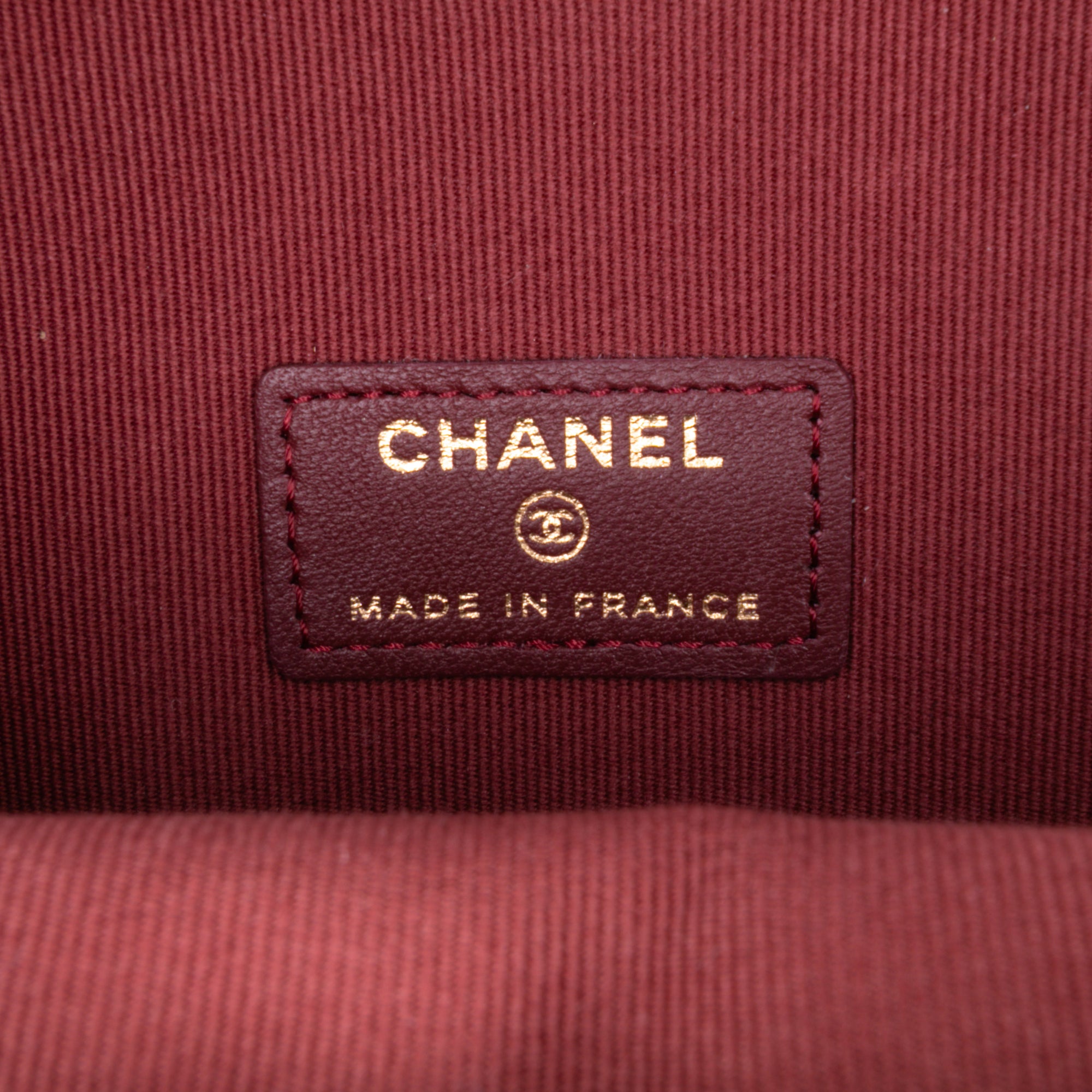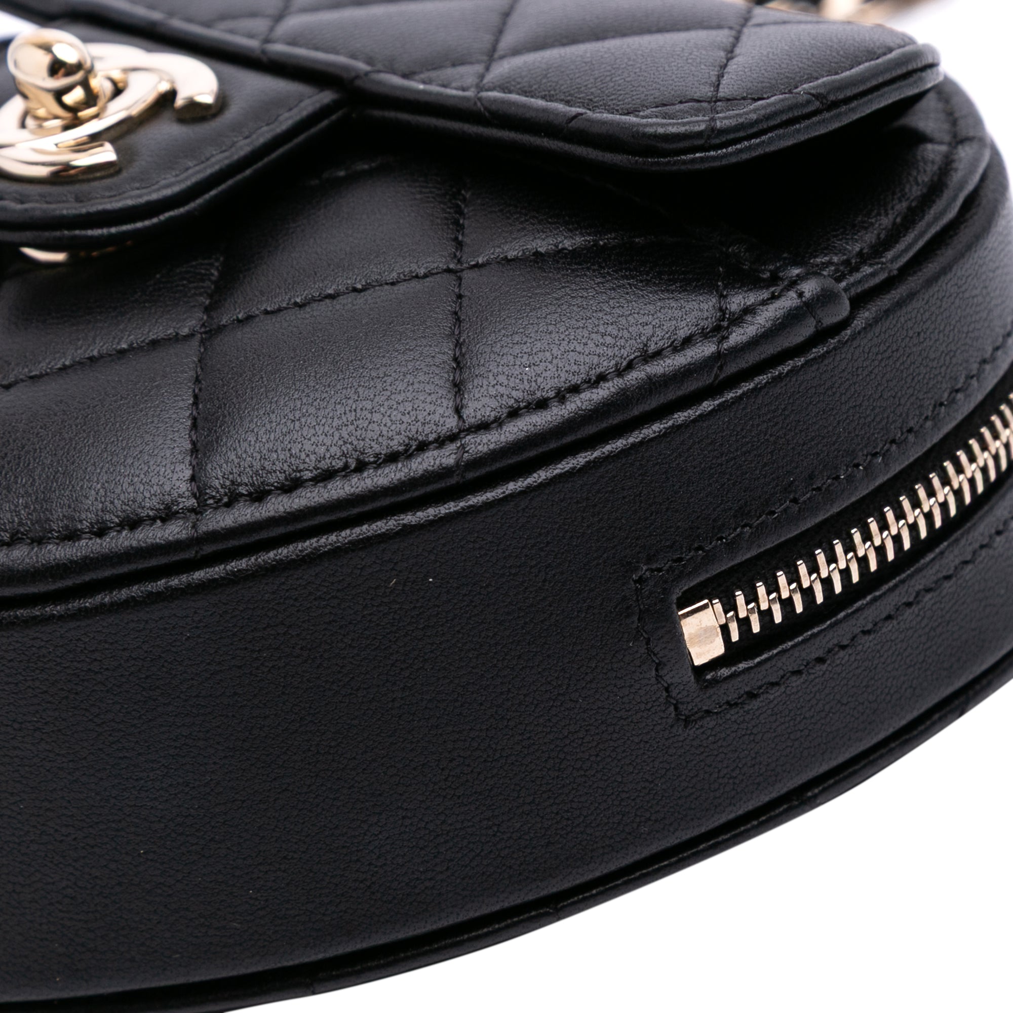 This crossbody bag features a quilted lambskin leather body, a leather woven chain shoulder strap, a zip-around closure, an exterior front flap pocket with CC turn-lock closure, and an exterior back slip pocket. Retail Price: 5500.00