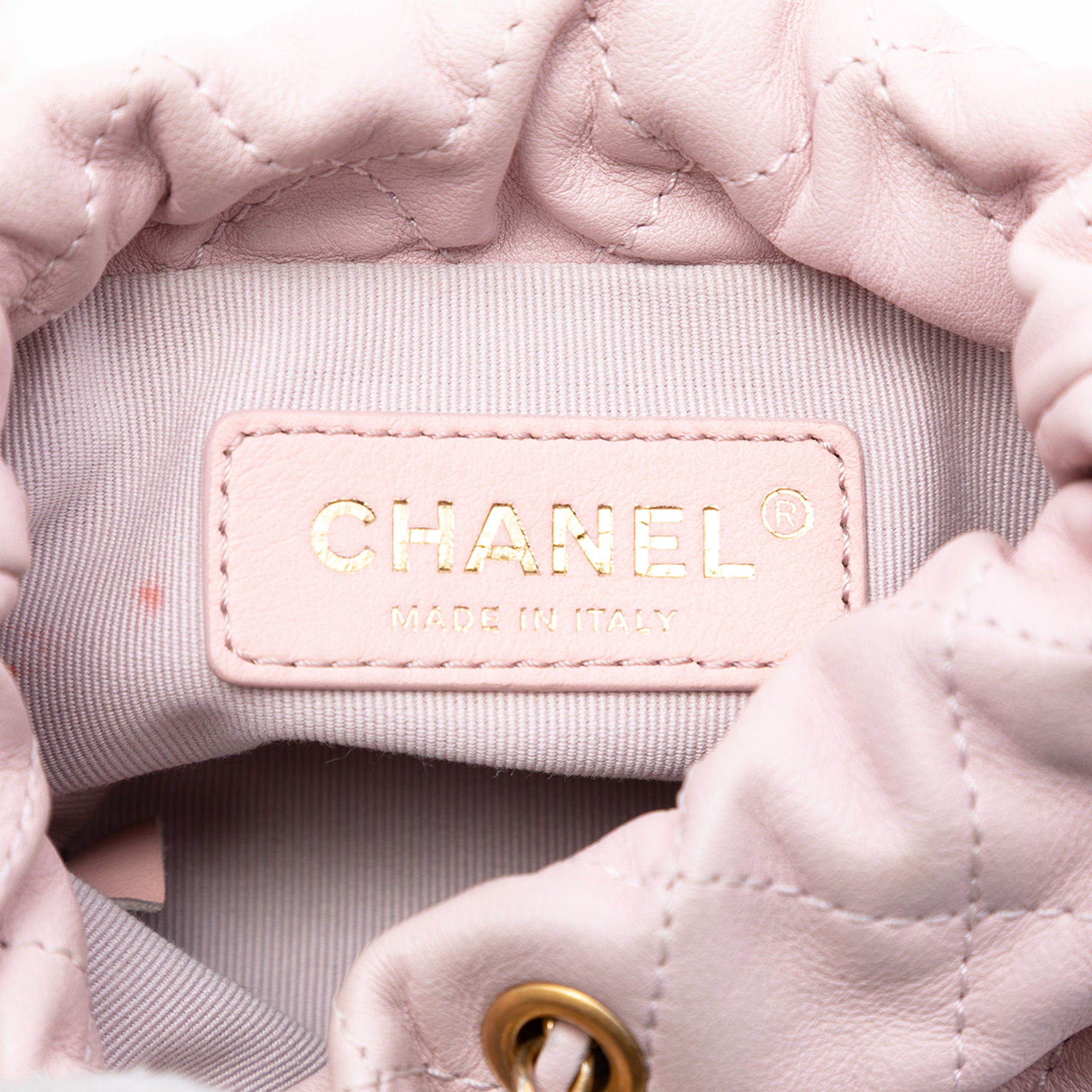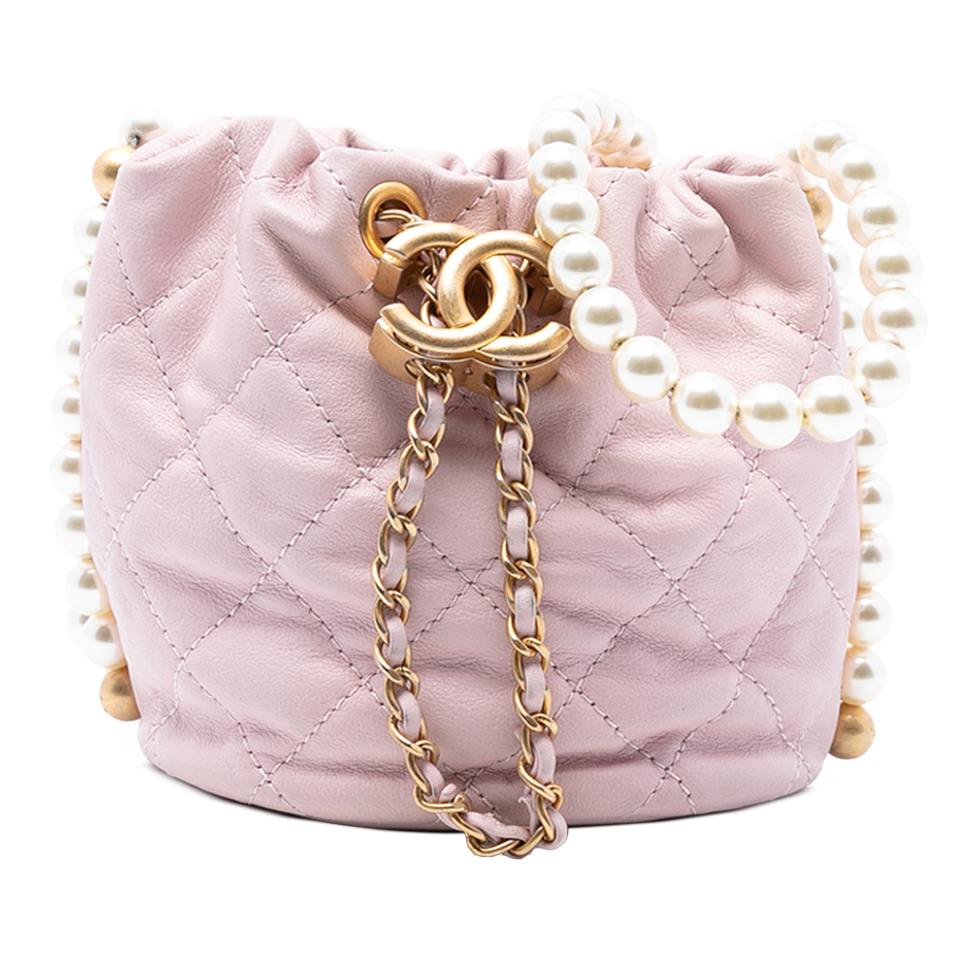 Chanel Mini Quilted Calfskin About Pearls Drawstring Bucket Bag