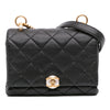 This crossbody bag features a quilted leather body, a chain link strap with leather shoulder guard, a front flap with CC turn lock closure, an exterior slip pocket, and an interior slip pocket. Retail Price: 4000.00