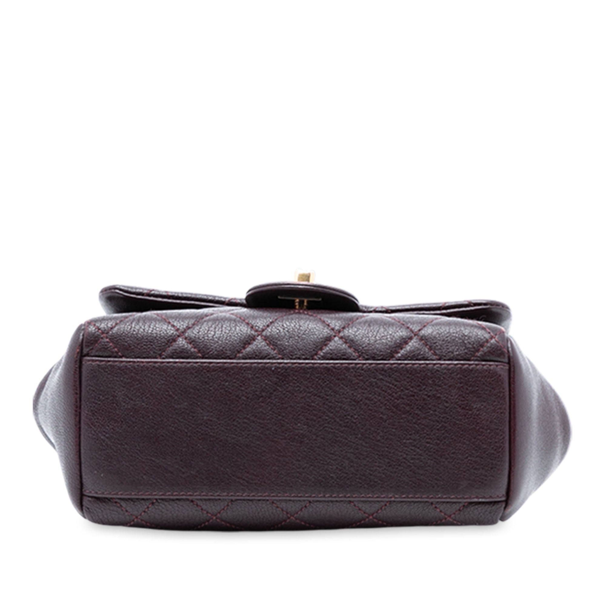 The Trapezio bag features a quilted sheepskin leather body, a curb chain handle, a flat leather shoulder strap, a front flap with interlocking Cs and a twist lock closure, an interior zip compartment, and an interior slip pocket. Retail Price: 5500.00