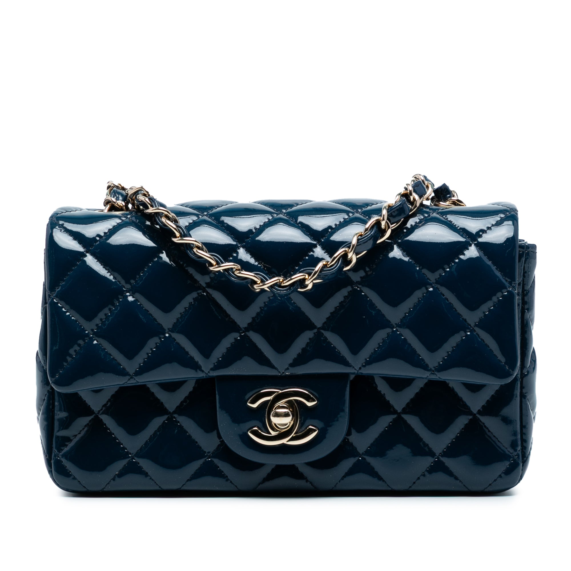 This crossbody bag features a quilted patent leather body, a leather woven chain link shoulder strap, a front flap with a twist lock closure, an exterior back slip pocket, and interior zip and slip pockets. Inclusion: authenticity card. Retail Price: 3900.00