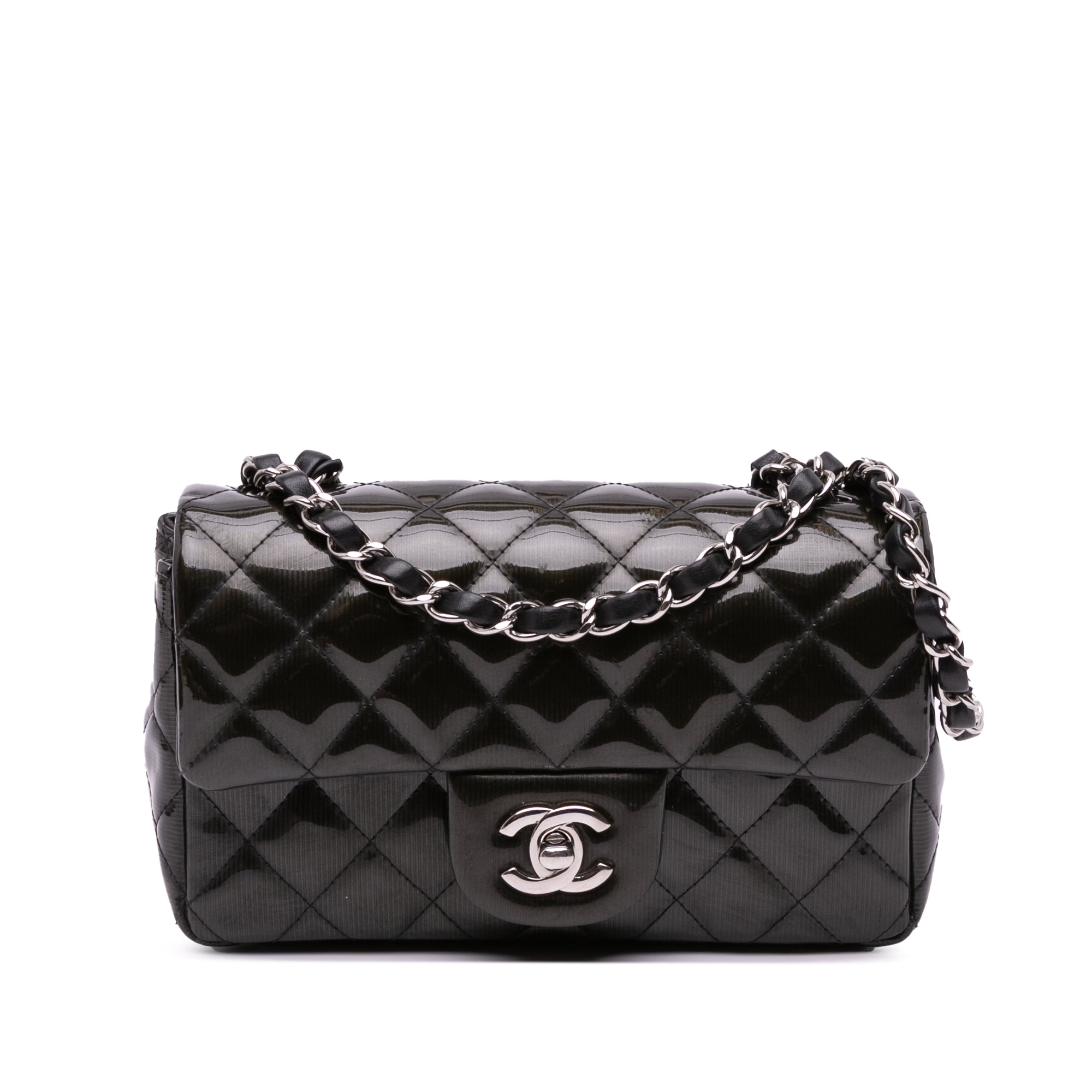 Chanel Mini Rectangular Classic Striped Patent Single Flap