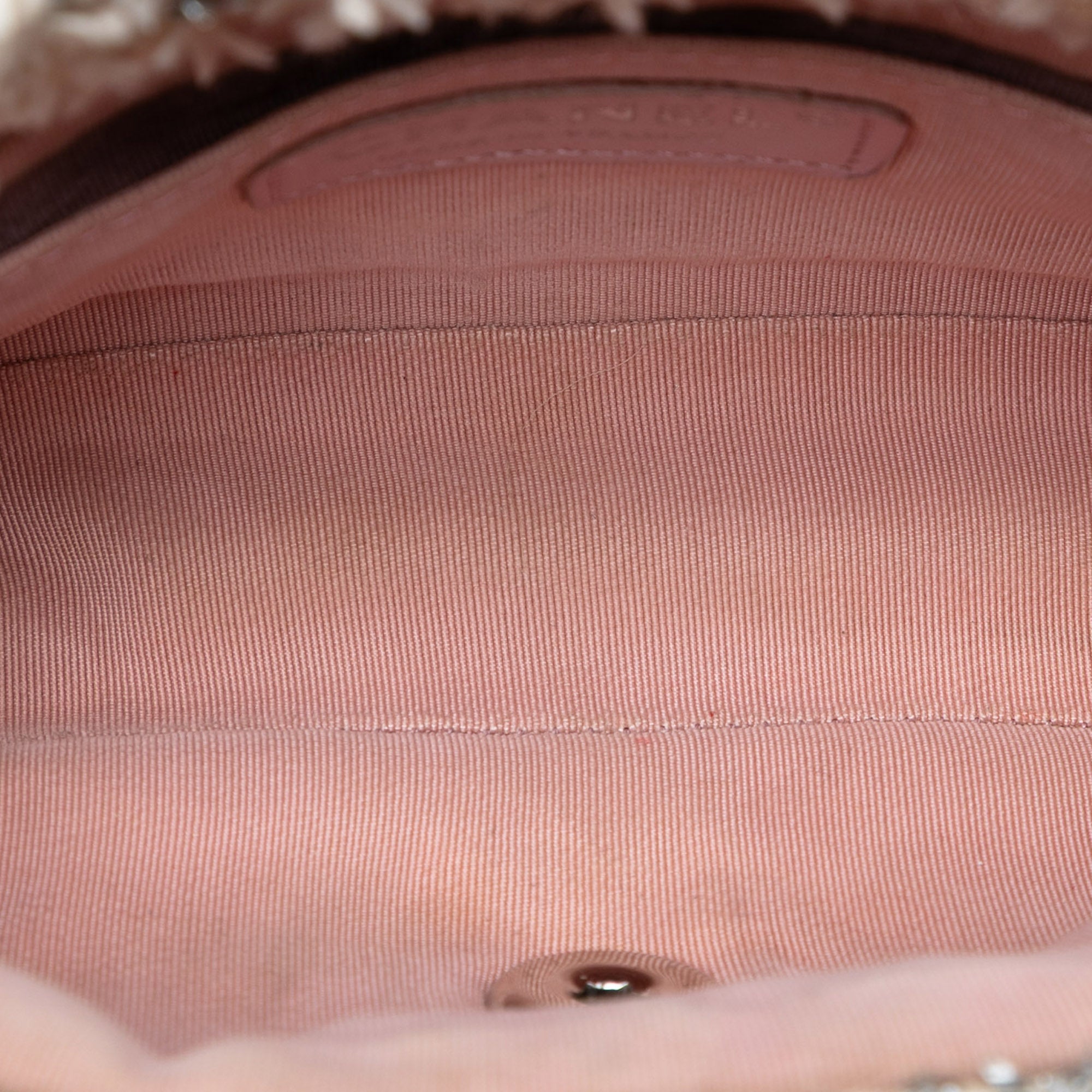 This crossbody bag features a tweed body, a leather woven chain shoulder strap, a front flap with interlocking Cs and twist lock closure, an exterior back slip pocket, and interior zip and slip pockets. Inclusion: authenticity card. Retail Price: 5500.00