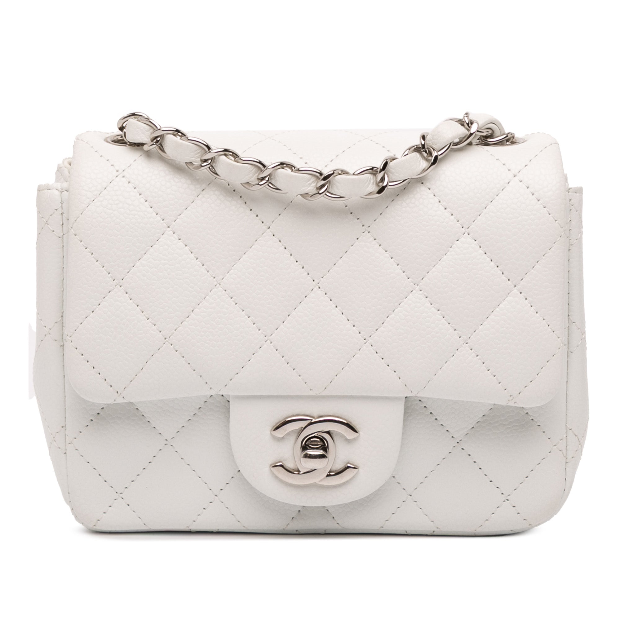 This crossbody bag features a quilted caviar leather body, a leather woven chain shoulder strap, a front flap with CC turn-lock closure, an exterior back slip pocket, and interior zip and slip pockets. Inclusion: authenticity card. Retail Price: 6800.00
