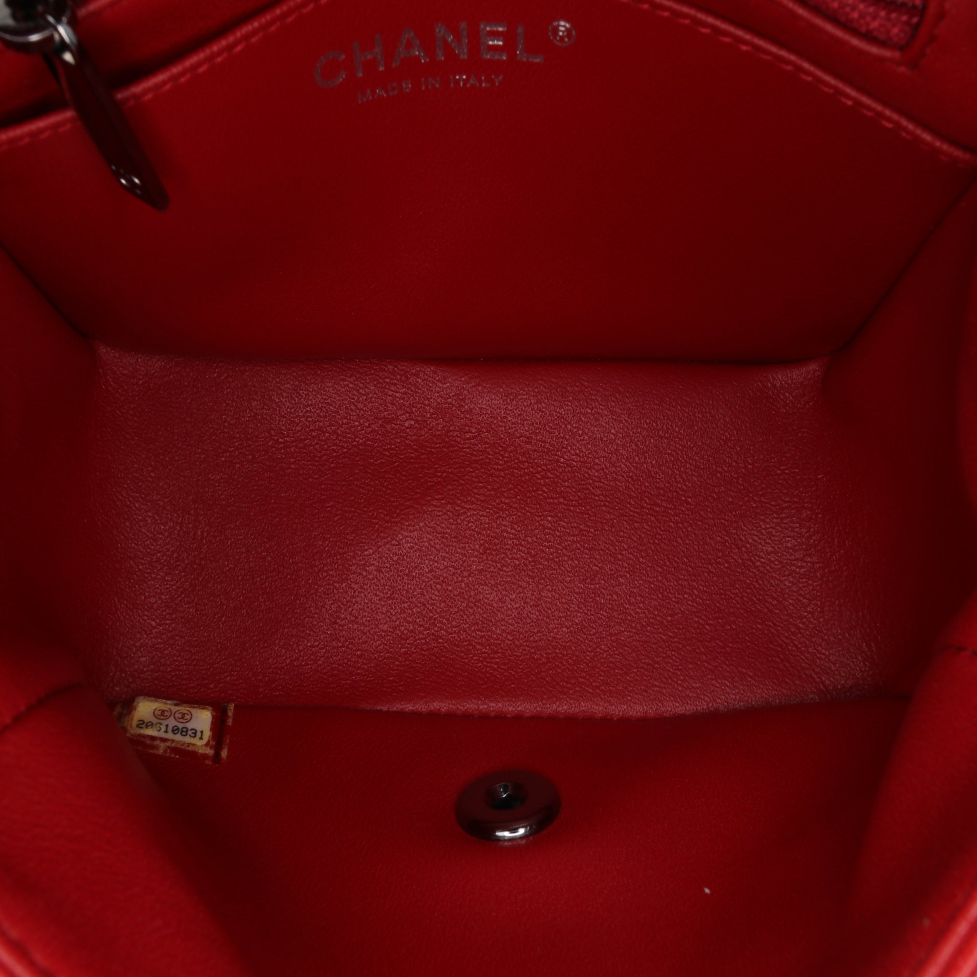 The Square Flap features a lambskin leather body, a leather woven chain shoulder strap, a front flap with turnlock closure, an exterior back slip pocket, and interior zip and slip pockets. Inclusion: Dust bag, box. Retail Price: 5500.00