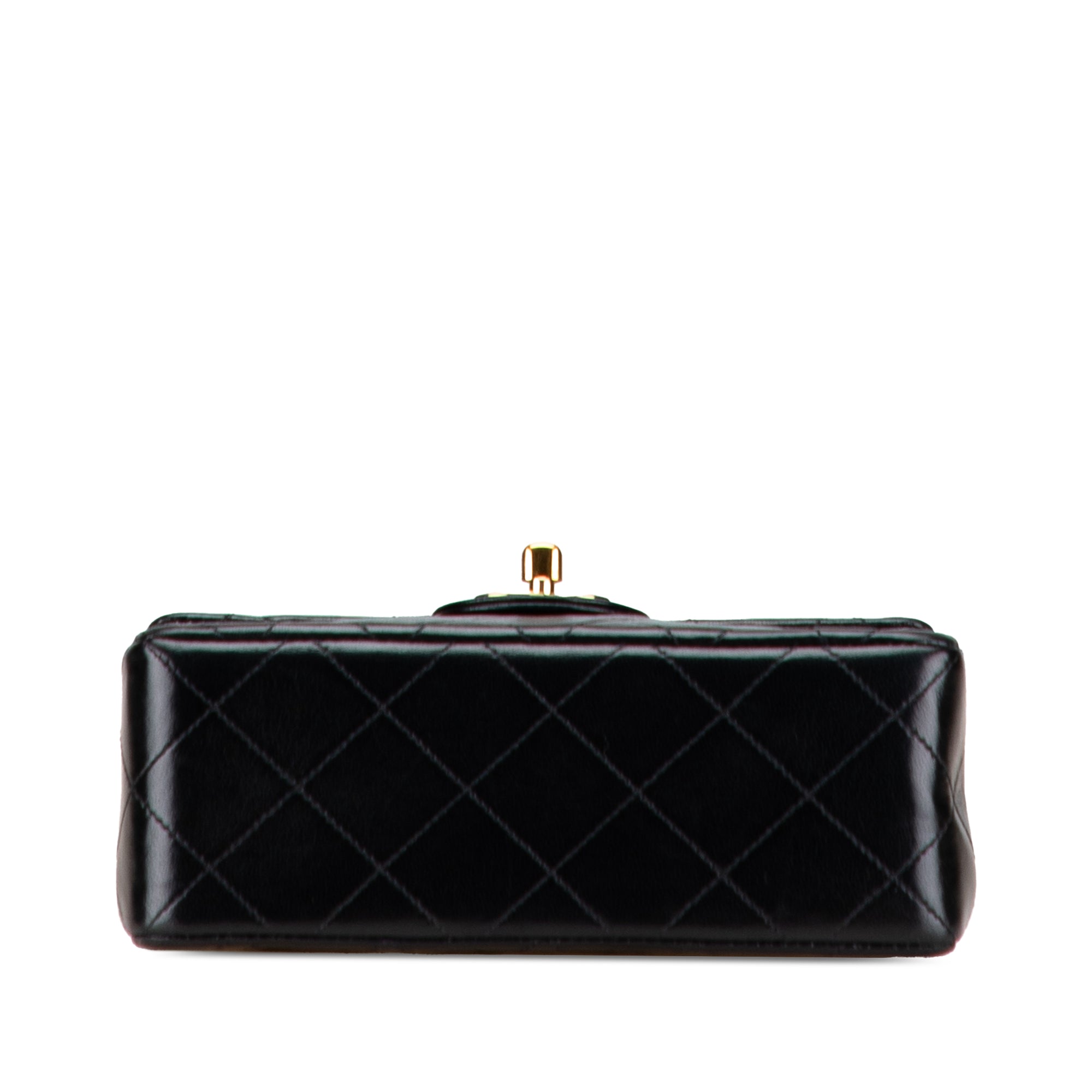 The Square Flap features a lambskin leather body, a leather woven chain shoulder strap, a front flap with turnlock closure, an exterior back slip pocket, and interior zip and slip pockets. Retail Price: 6850.00