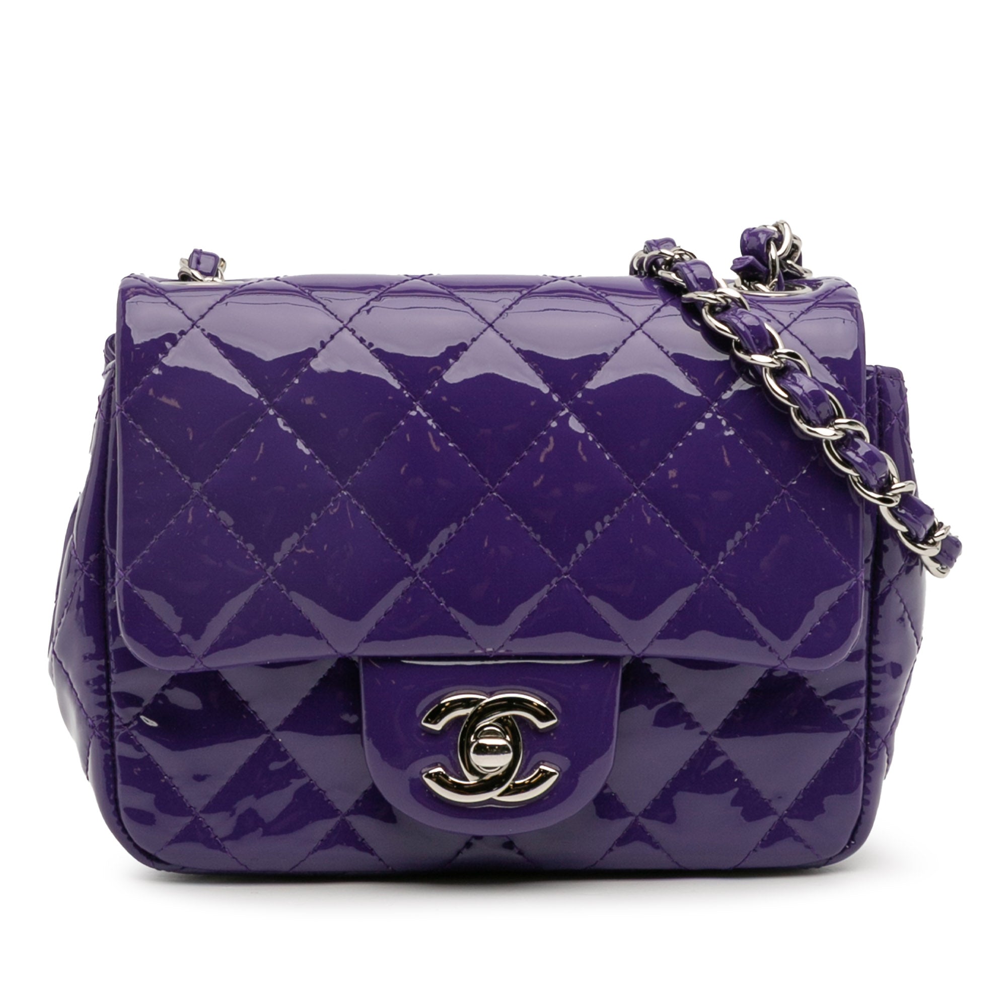 This crossbody bag features a quilted patent leather body, a leather woven chain link shoulder strap, a front flap with interlocking CC and a twist lock closure, an exterior back slip pocket, and interior zip and slip pockets. Inclusion: Dust bag, authenticity card. Retail Price: 5000.00