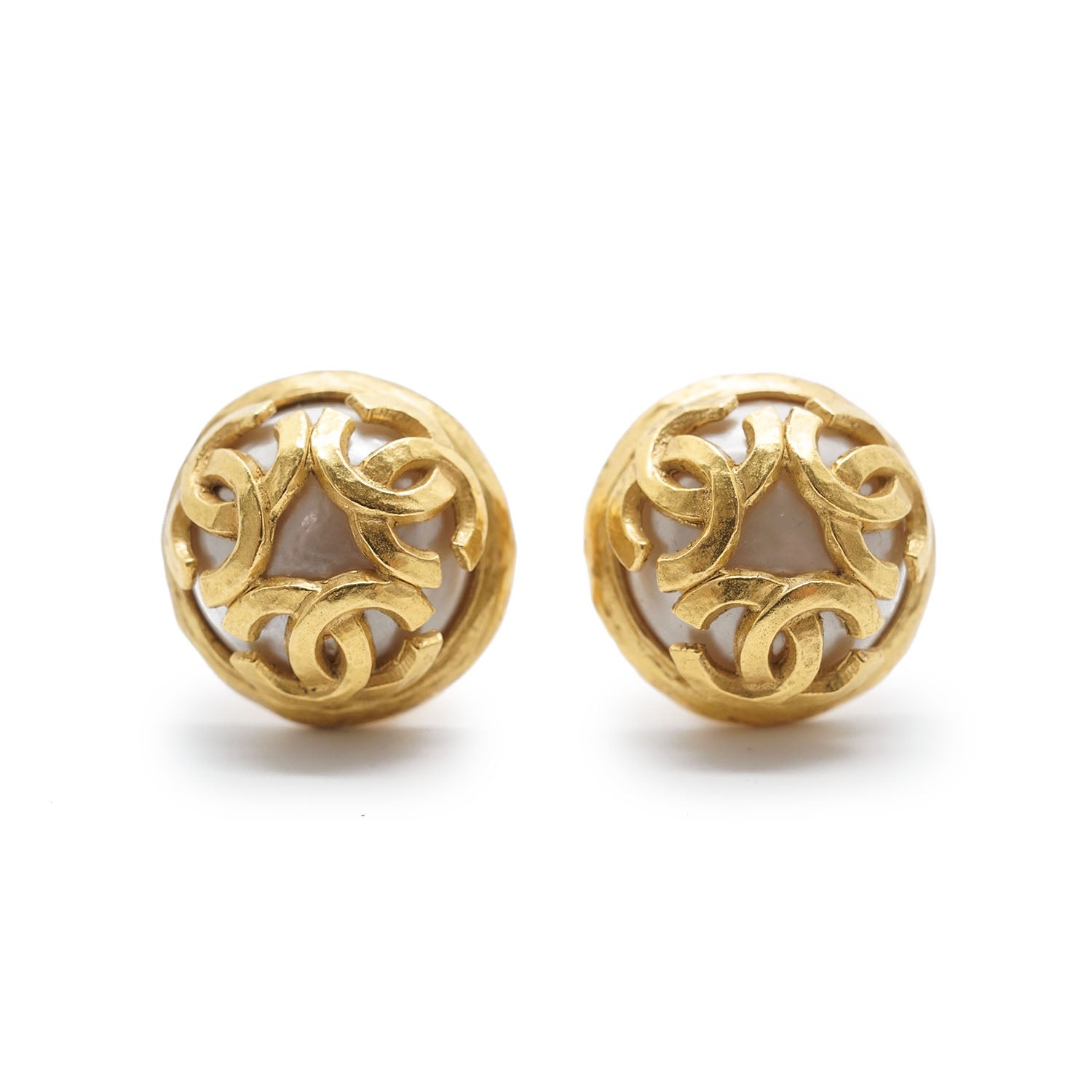 Chanel Multiple CC Artificial Pearl Round Clip-On Earrings GP