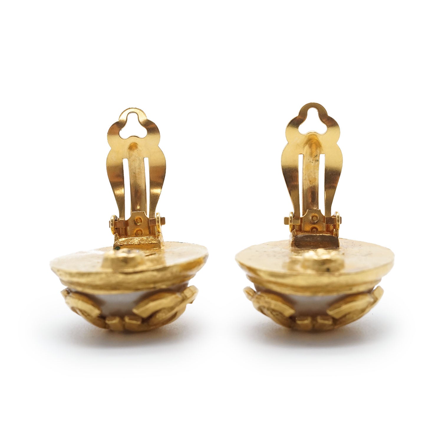 Multiple CC Artificial Pearl Round Clip-On Earrings GP Gold BrassDepth: 1.2cmHeight: 2.2cmWidth: 2.2cmDiscoloration: Some tarnish on the back of both earringsScratch: Slight scratches on one pearl (on the side)Worn: Minor signs of wearSerial code: 94ASKU: 7070108
