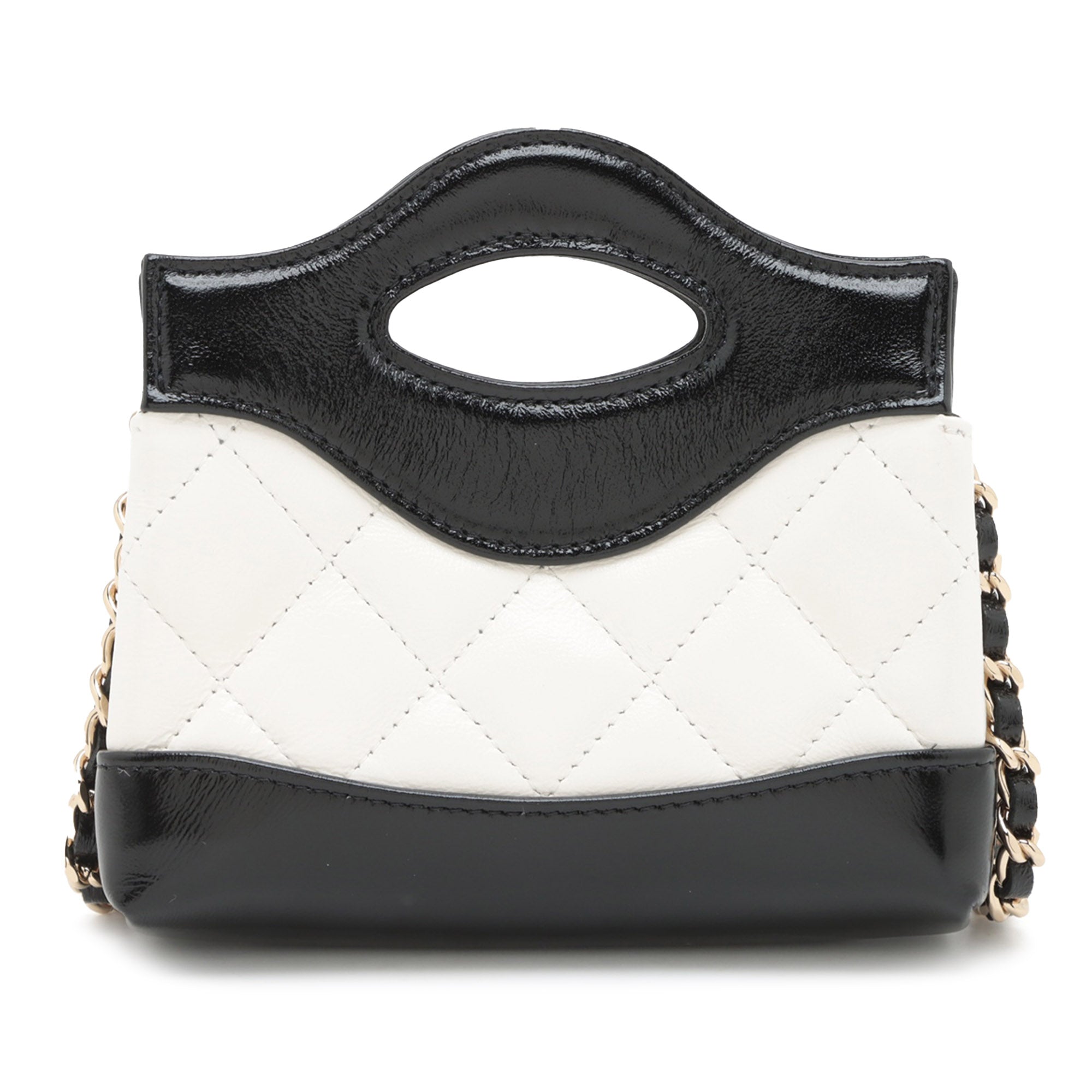 Chanel Nano Bicolor Quilted Shiny Lambskin 31 Clutch With Chain