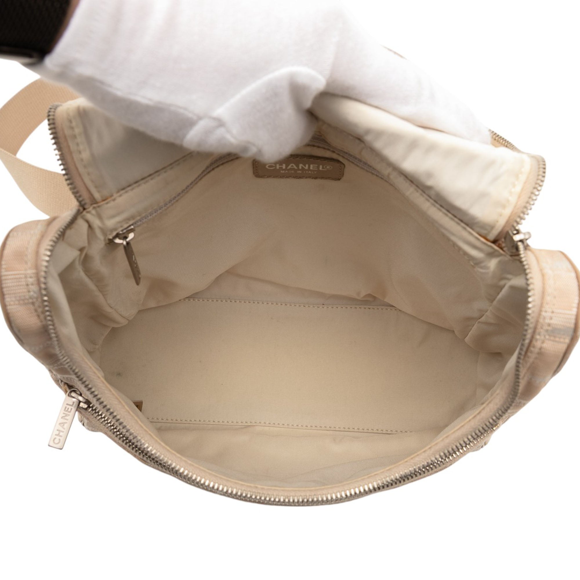 This backpack features a nylon body, convertible flat shoulder straps, a flat top handle, a front flap with zip closure, an exterior front zip pocket, and an interior zip pocket. Inclusion: Dust bag. Retail Price: 1000.00