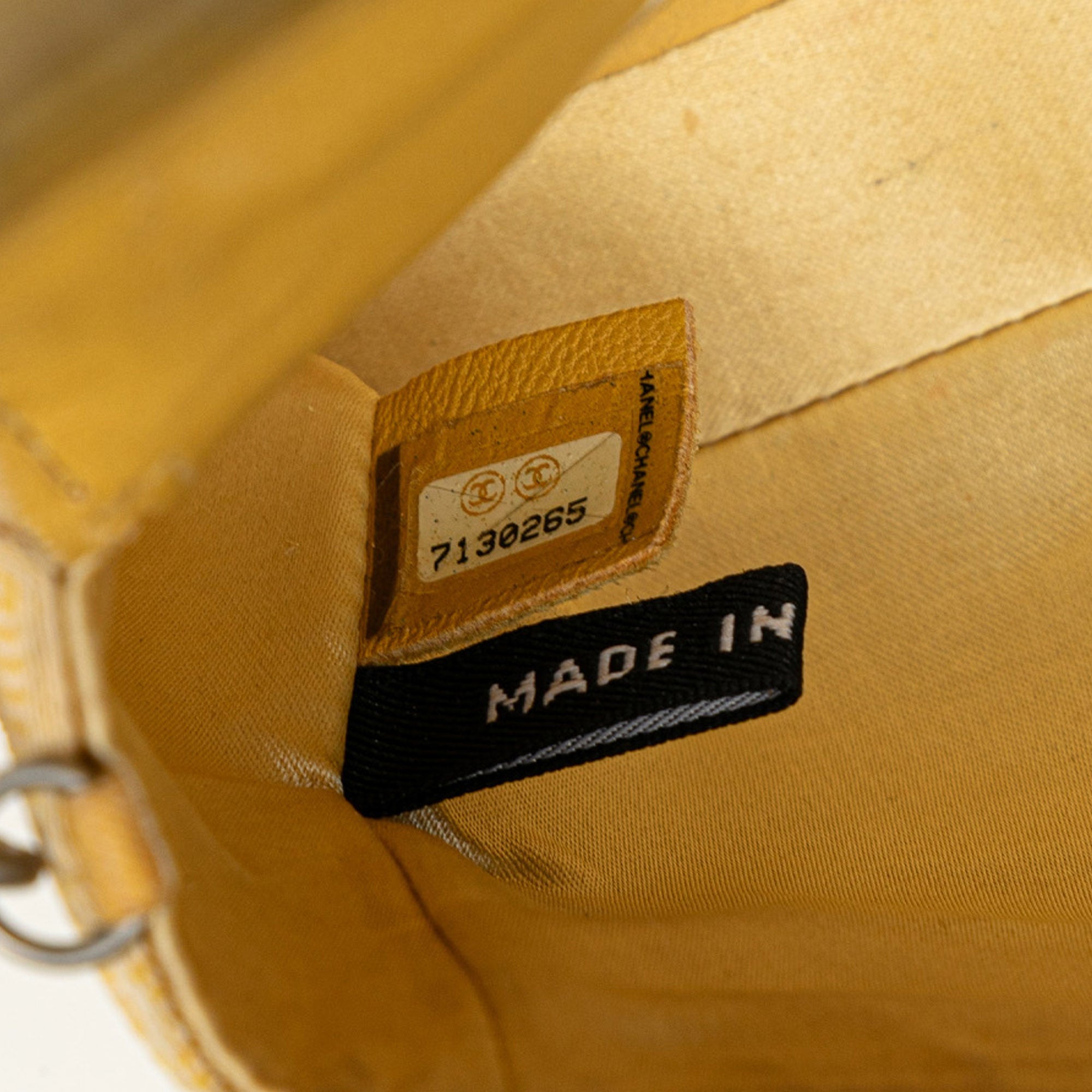This shoulder bag features a nylon body, a nylon woven chain strap, a front flap with interlocking Cs and a twist lock closure, and interior slip pockets. Retail Price: 3795.00
