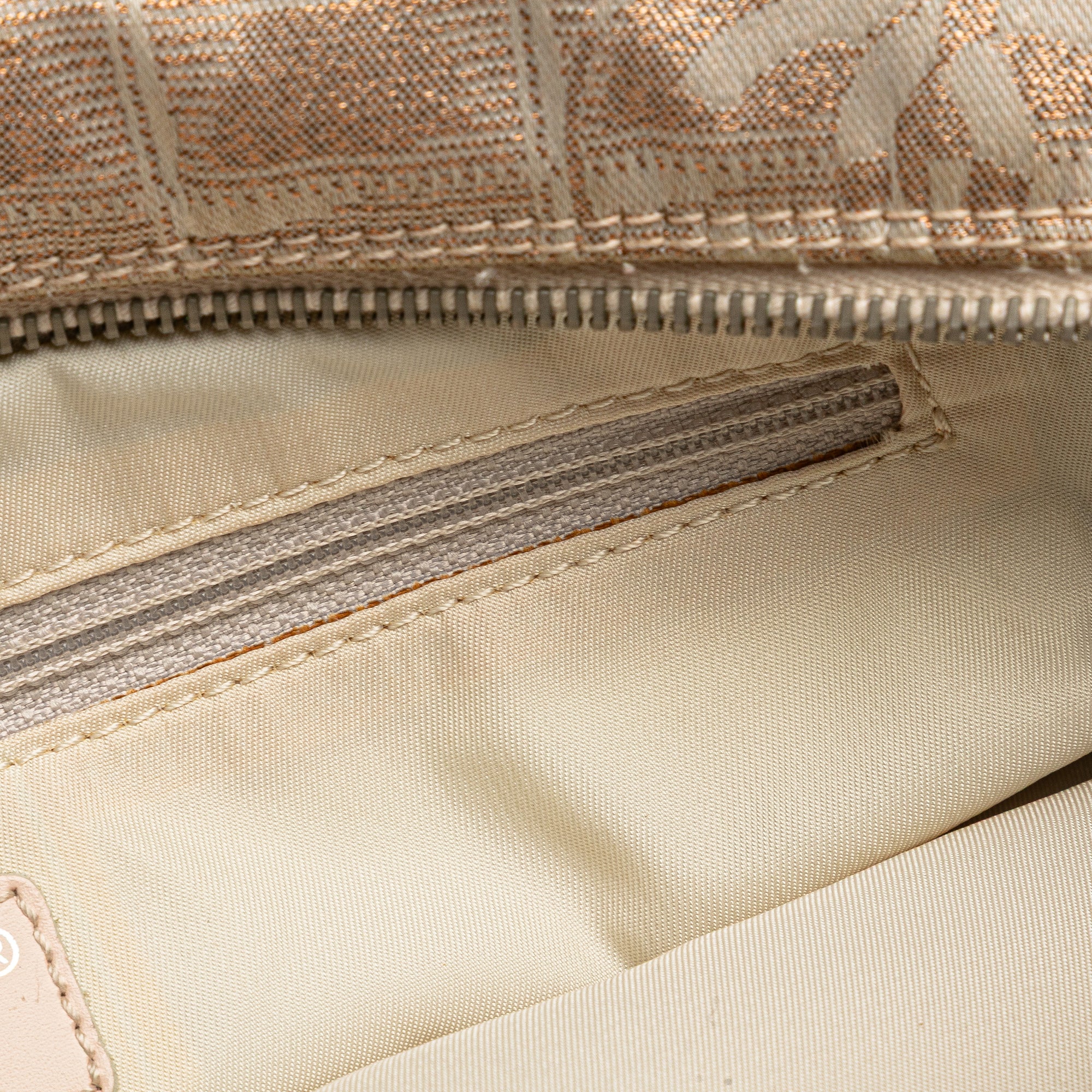This handbag features a nylon body, flat leather handles, a top zip closure, and an interior zip pocket. Retail Price: 1150.00