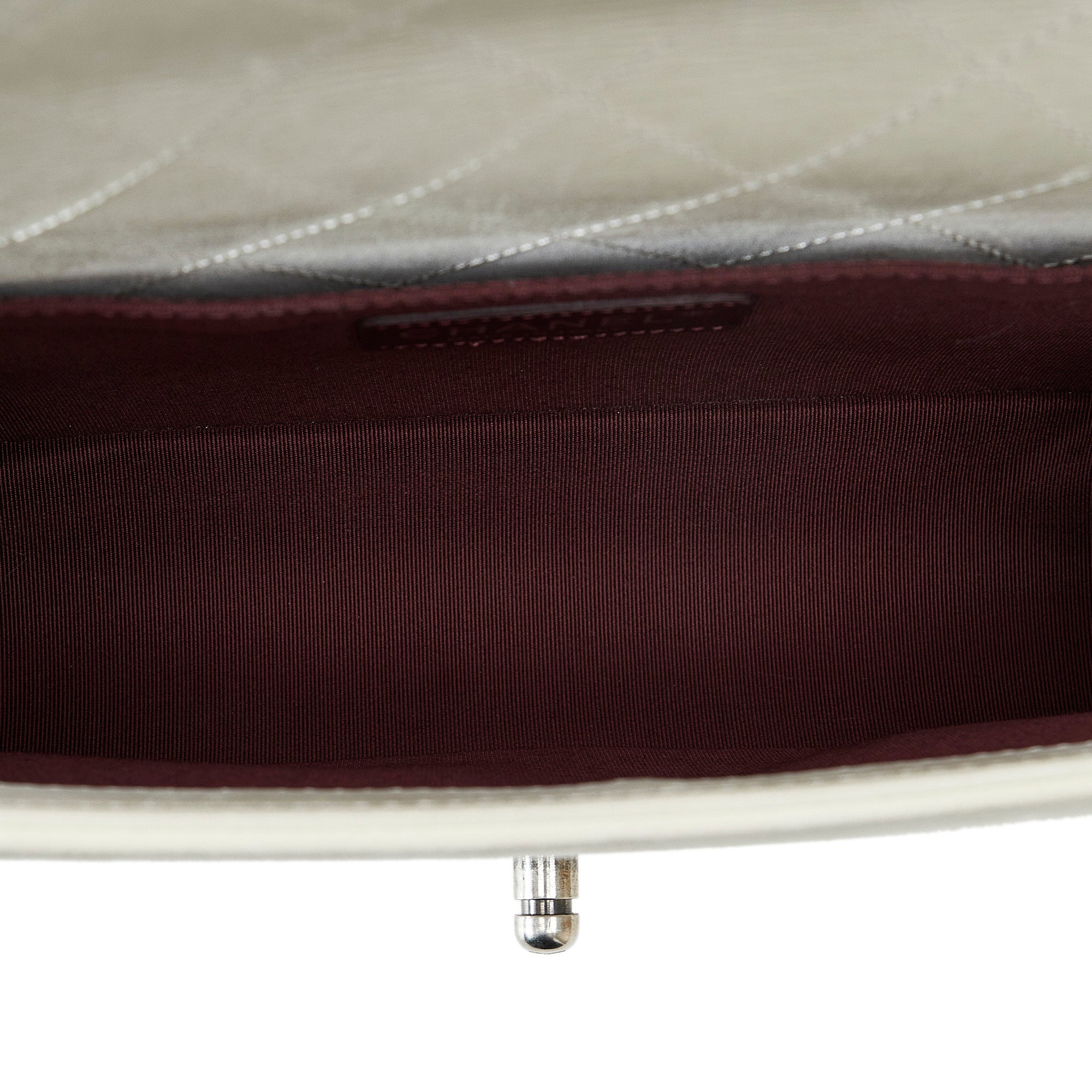 The Boy flap features a fur body with leather trim, a silver-tone curb chain strap, a front flap with push lock closure, and an interior slip pocket. Inclusion: Dust bag. Retail Price: 4200.00