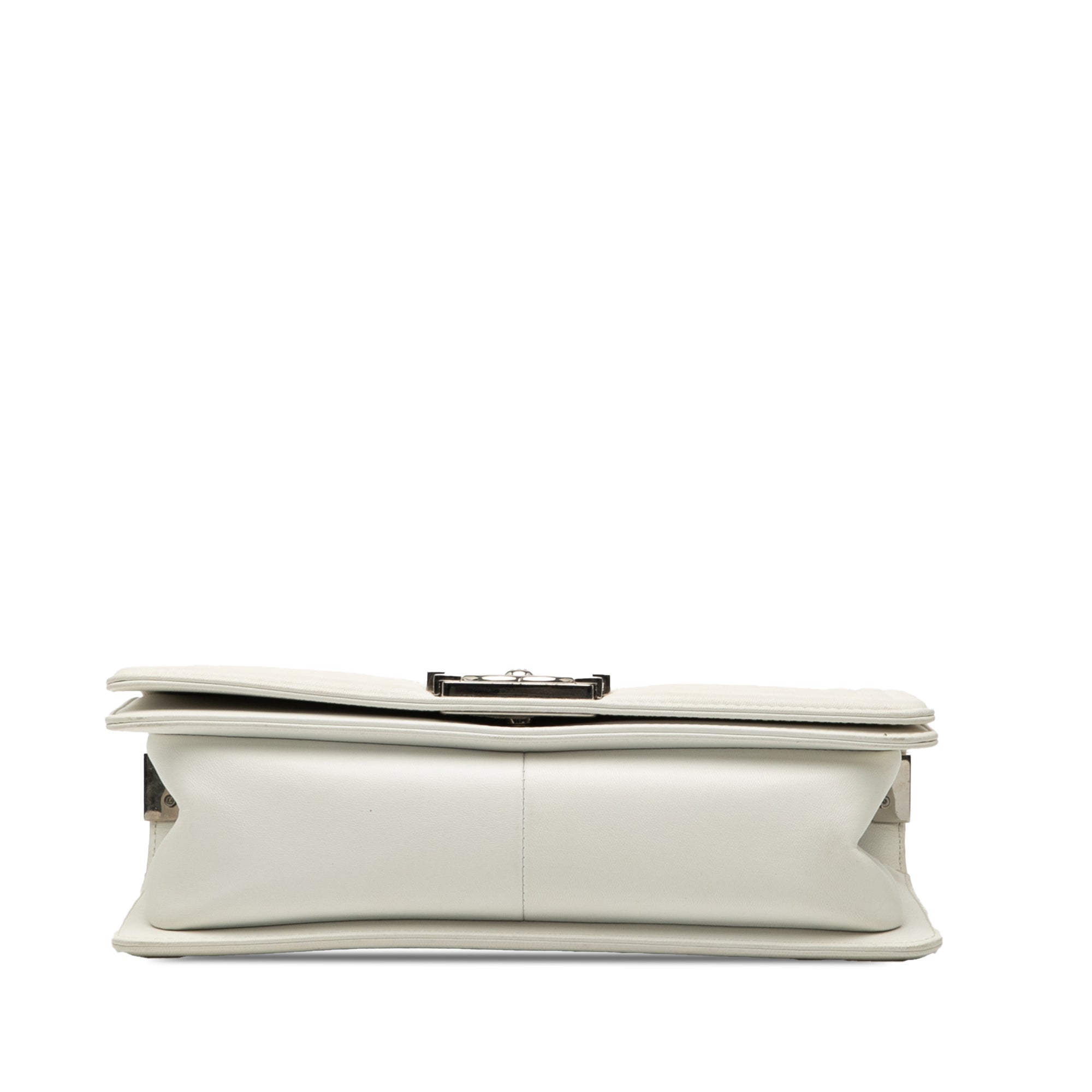 The Boy Flap bag features a quilted lambskin leather body with holographic PVC details, a silver-tone curb chain link shoulder strap with leather guard, a front flap with interlocking Cs and push lock closure, and interior slip pockets. Inclusion: Dust bag, authenticity card. Retail Price: 7200.00