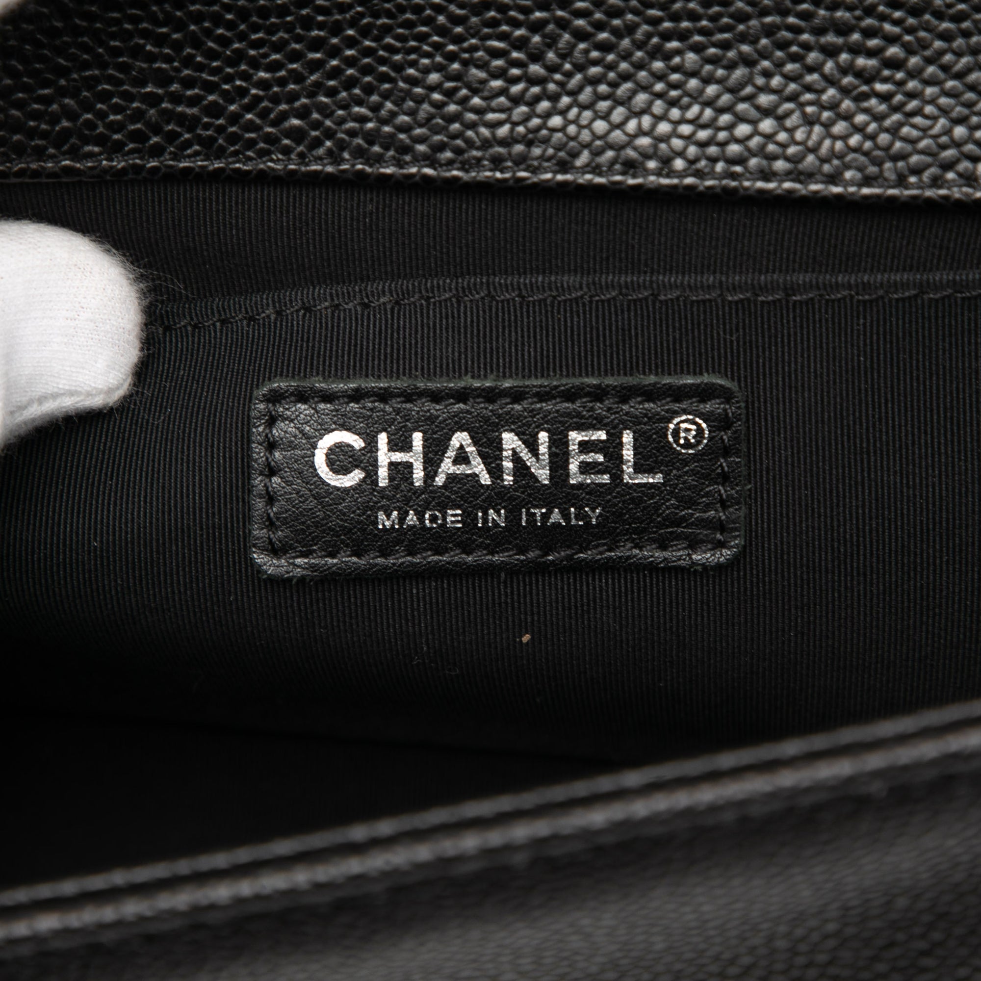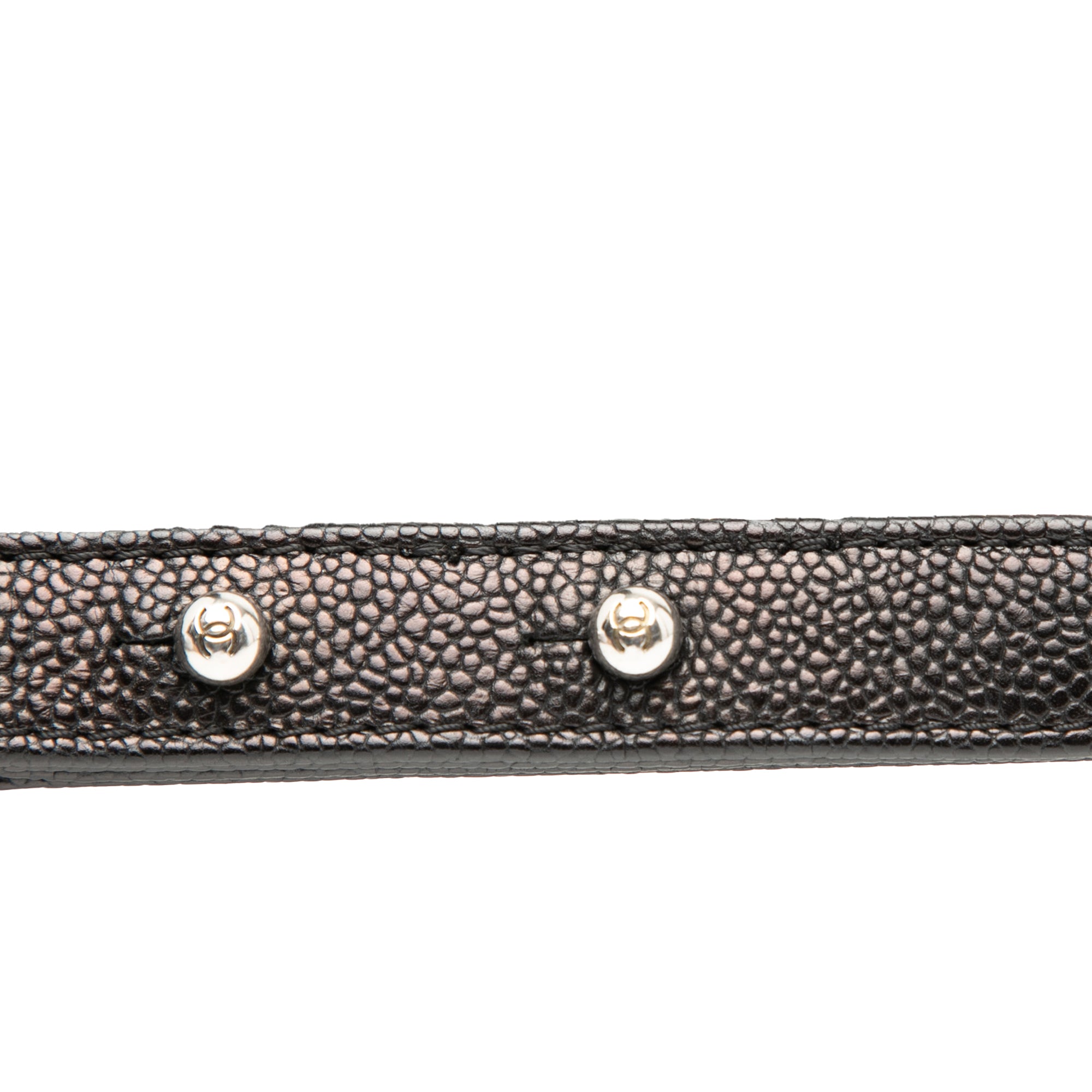 This crossbody bag features a quilted caviar leather body, a chain link strap with an adjustable flat leather guard, a front flap with a CC push-lock closure, and interior zip and slip pockets. Retail Price: 6600.00