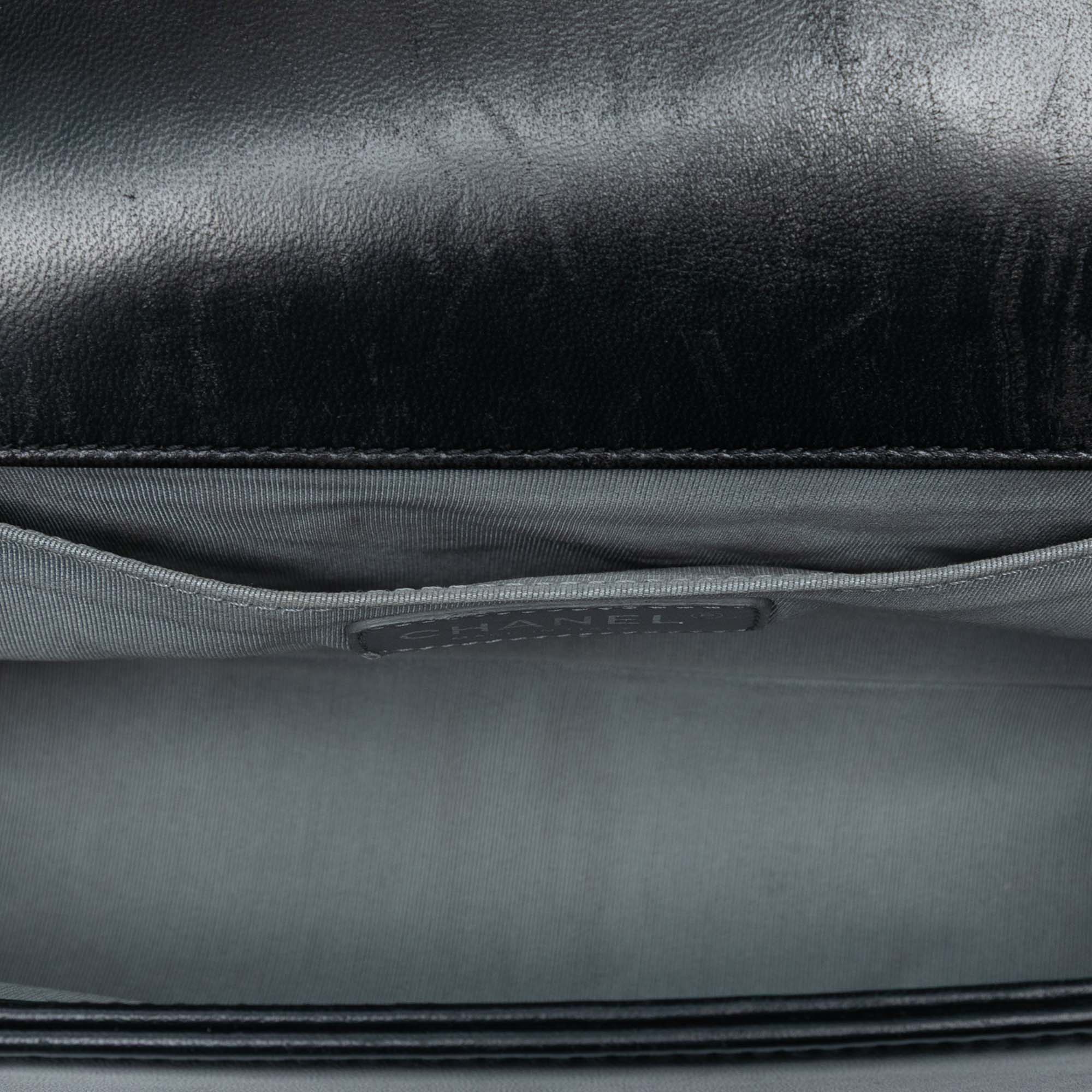 This Boy flap features a quilted lambskin leather body, a curb chain strap, a front flap with a push lock closure, and an interior slip pocket. Retail Price: 6600.00