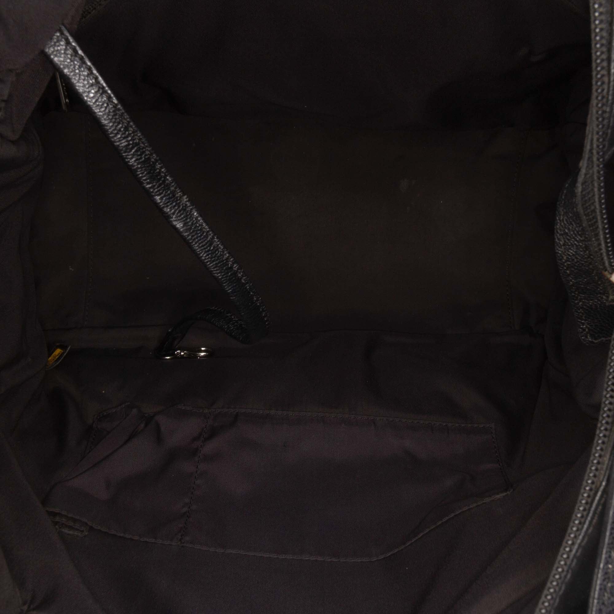 The Paris Biarritz tote bag features a coated canvas body, flat canvas and leather handles, a top zip closure, exterior side slip pockets, an exterior front zip pocket, and interior zip and slip pockets. Retail Price: 1895.00