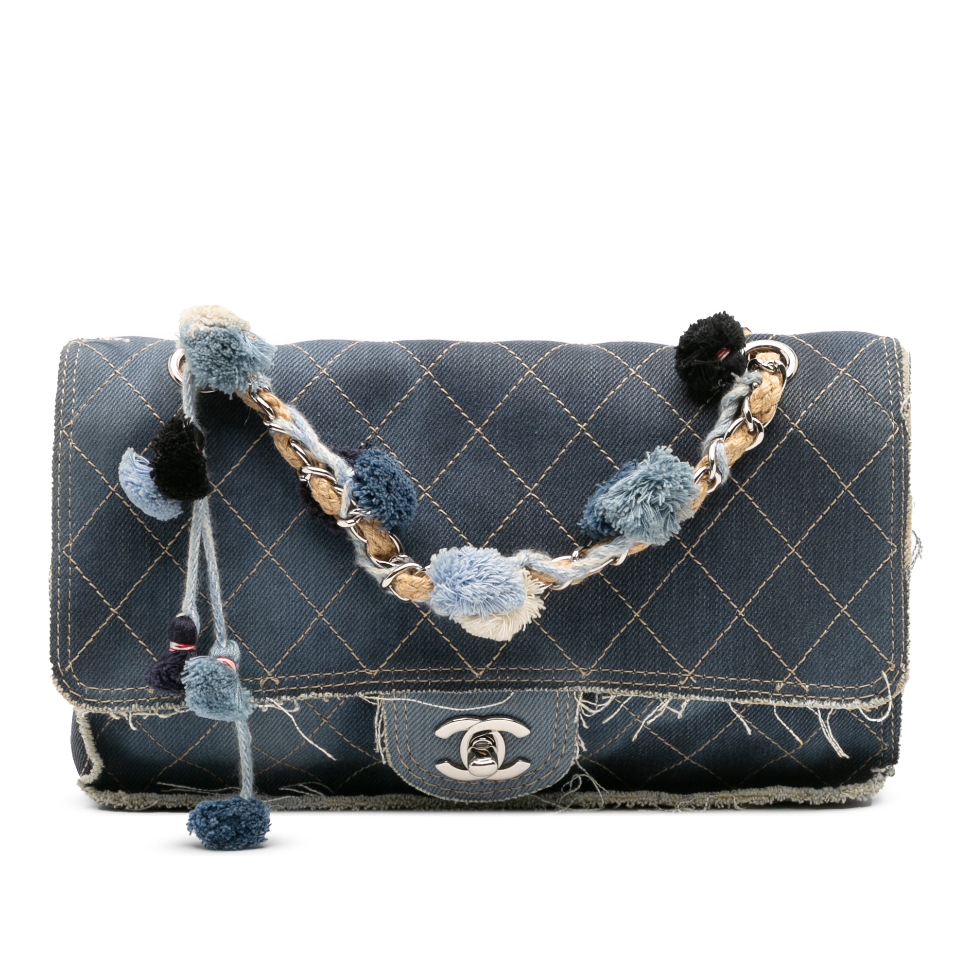 Chanel Paris Dubai Medium Quilted Denim Pompom Flap