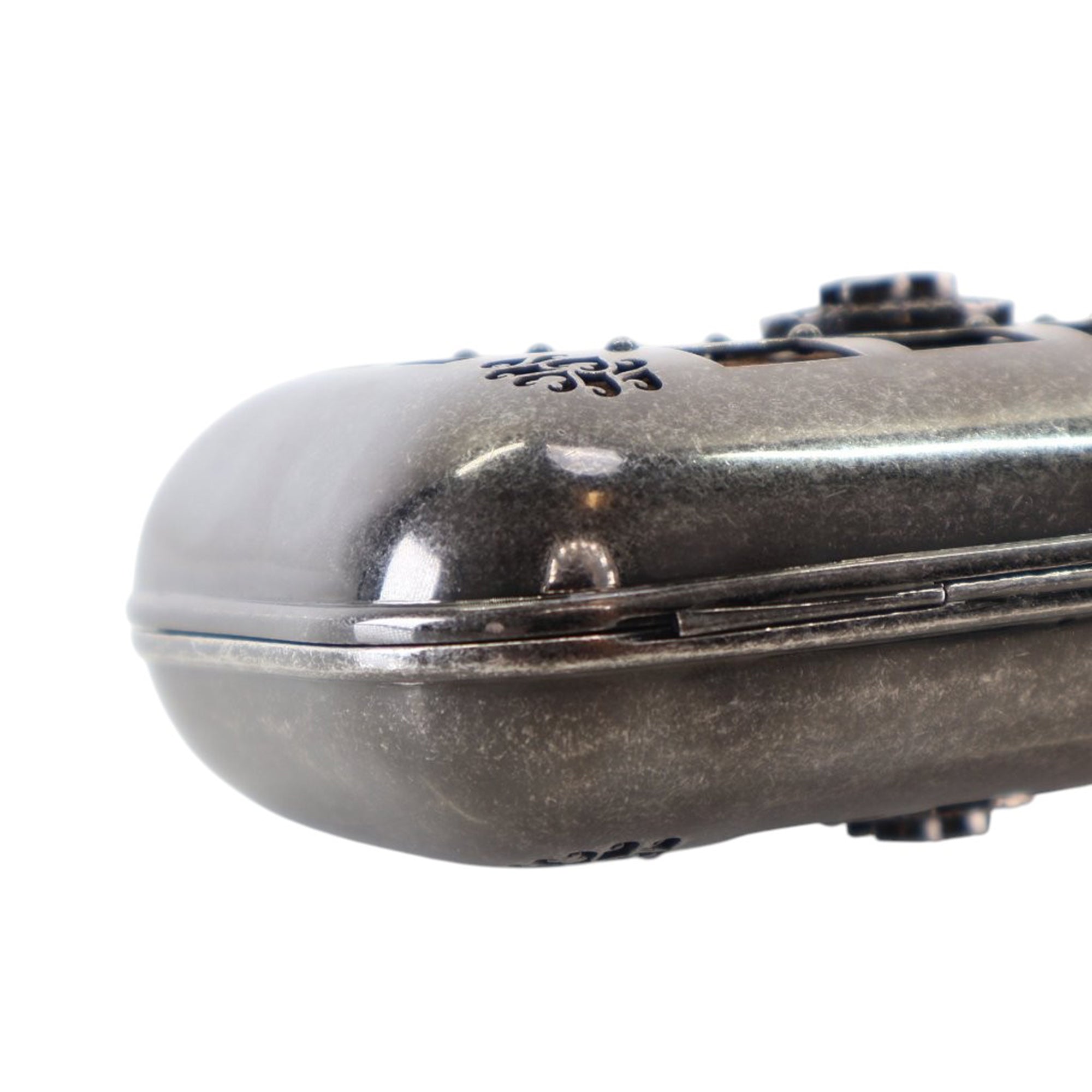 Chanel Paris Edinburgh Mini Gunmetal Grid Cage Clutch on Chain