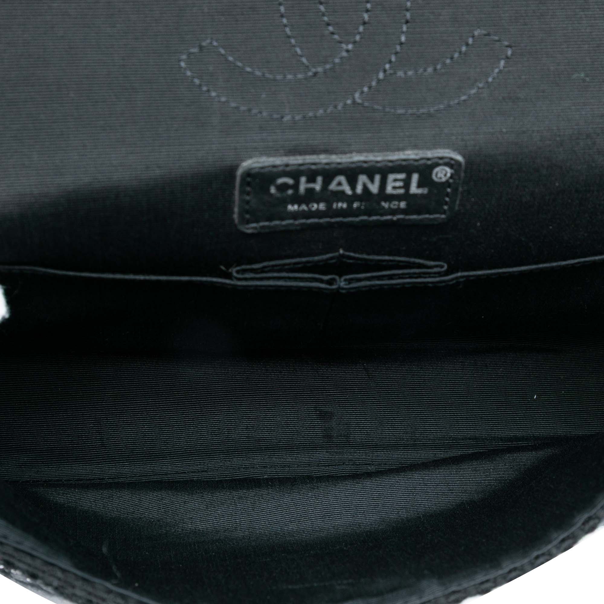 This double flap features a tweed body with strass embellishments, a chain link shoulder strap, double front flaps with a turn lock closure, and interior zip and slip pockets. Retail Price: 6800.00