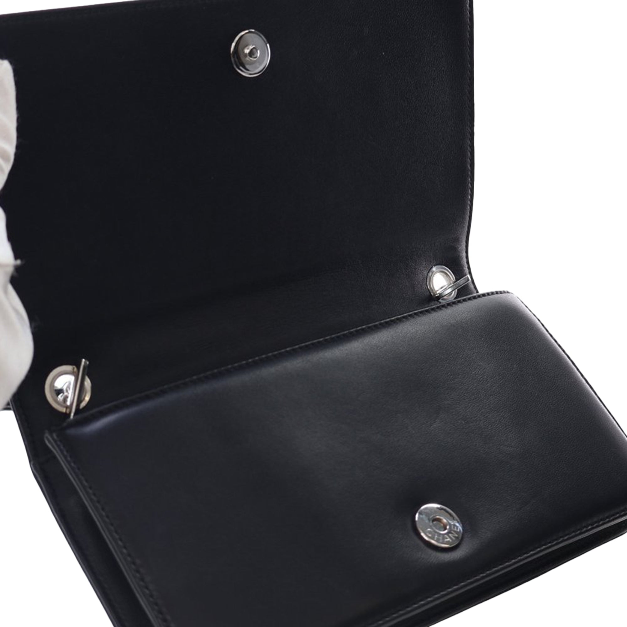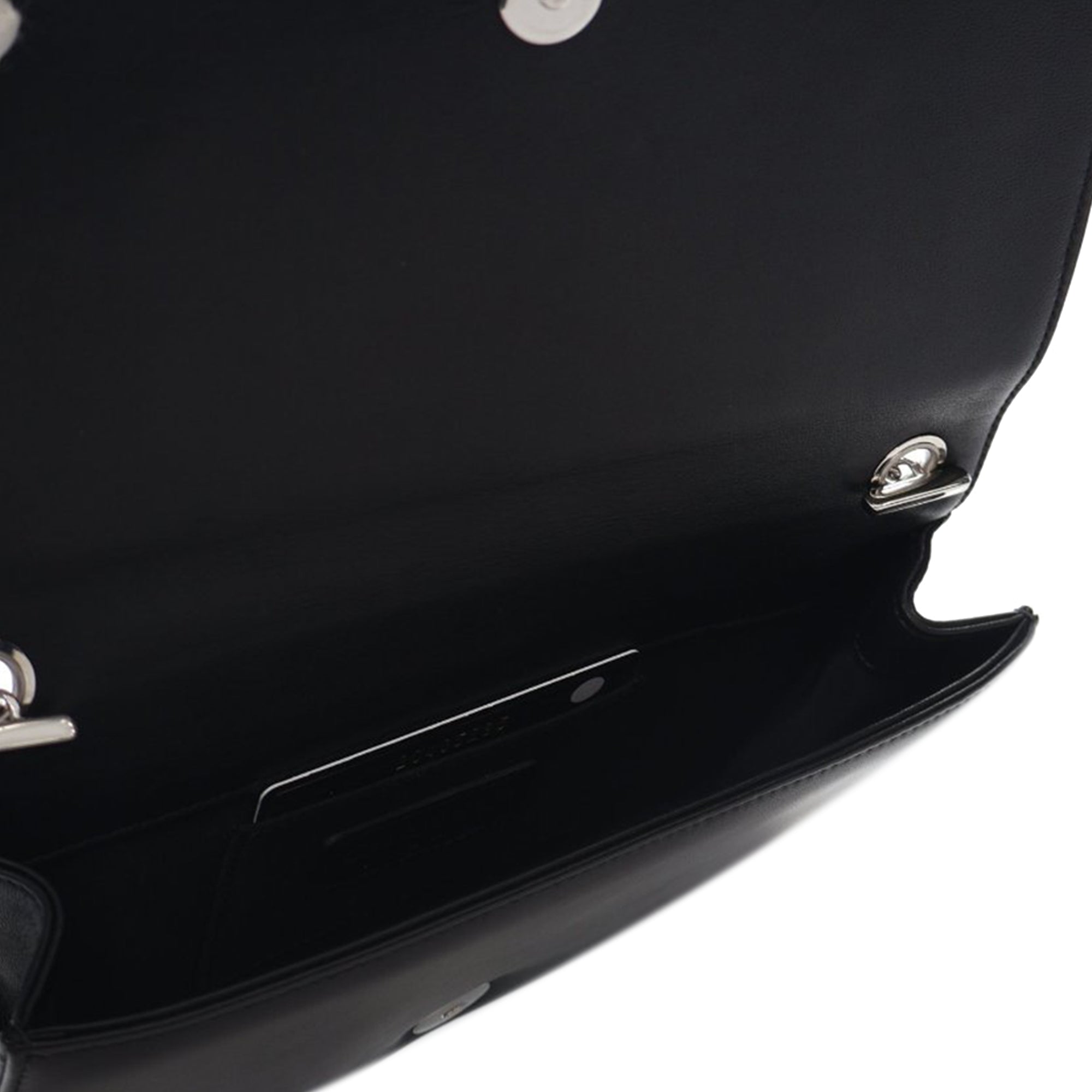 This flap bag features a patent leather body with acrylic details, a leather-woven chain link strap with a flat leather guard, a front flap with magnetic snap closure, and an interior slip pocket. Inclusion: Dust bag, authenticity card. Retail Price: 4220.00