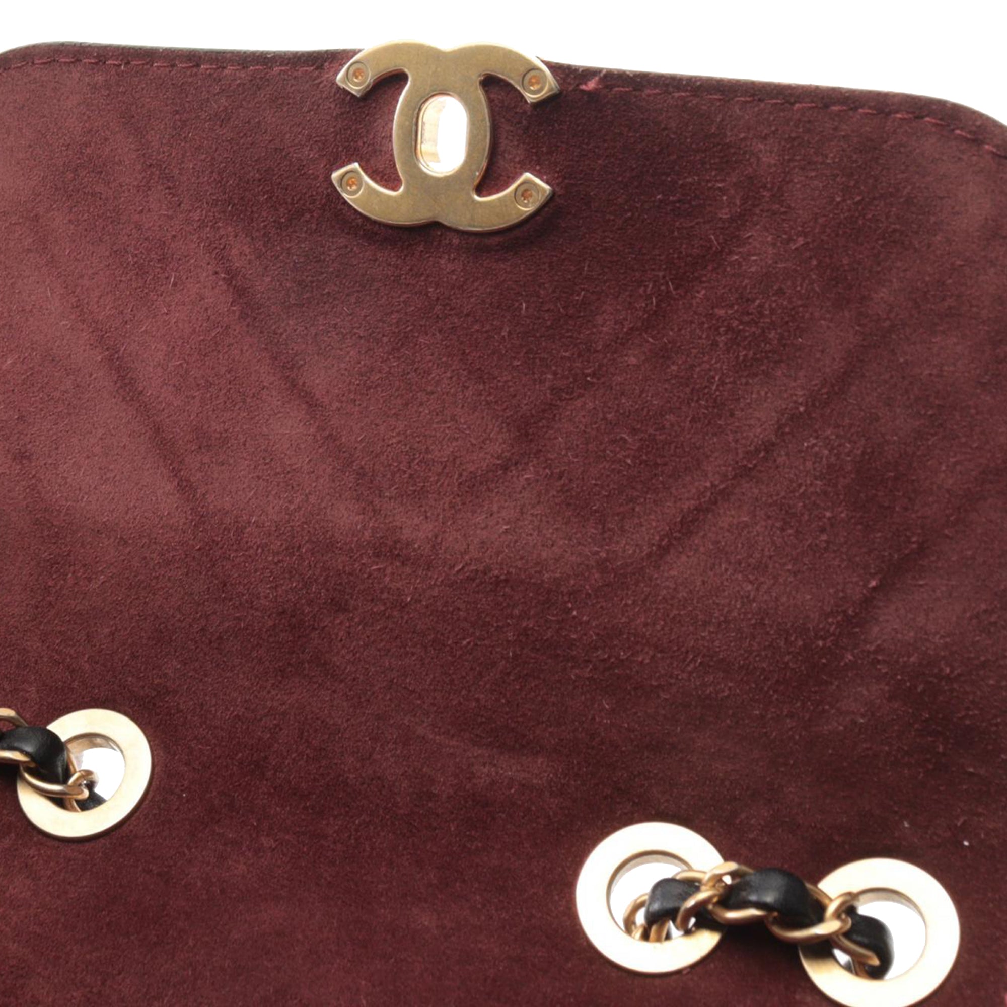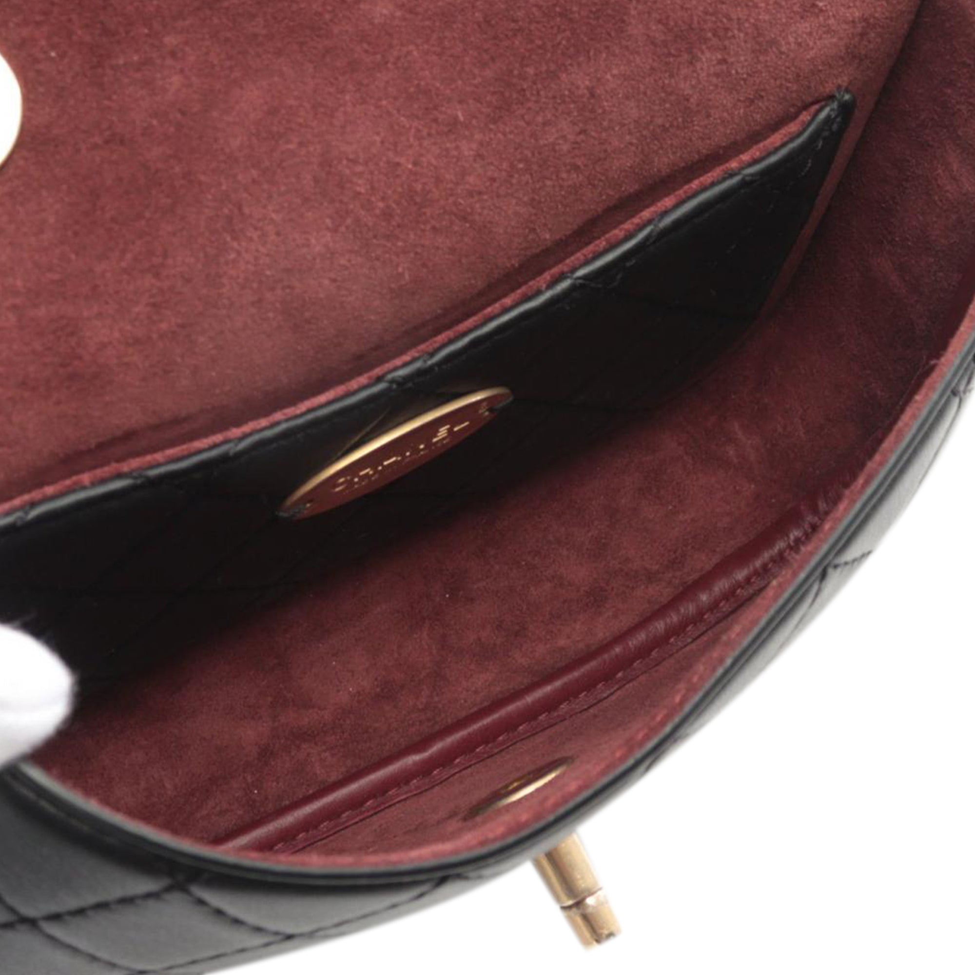 This shoulder bag features calfskin leather body, leather woven chain link straps with leather guard, a front flap with CC twist lock closure, an interior slip pocket, and a coin purse. Retail Price: 4300.00