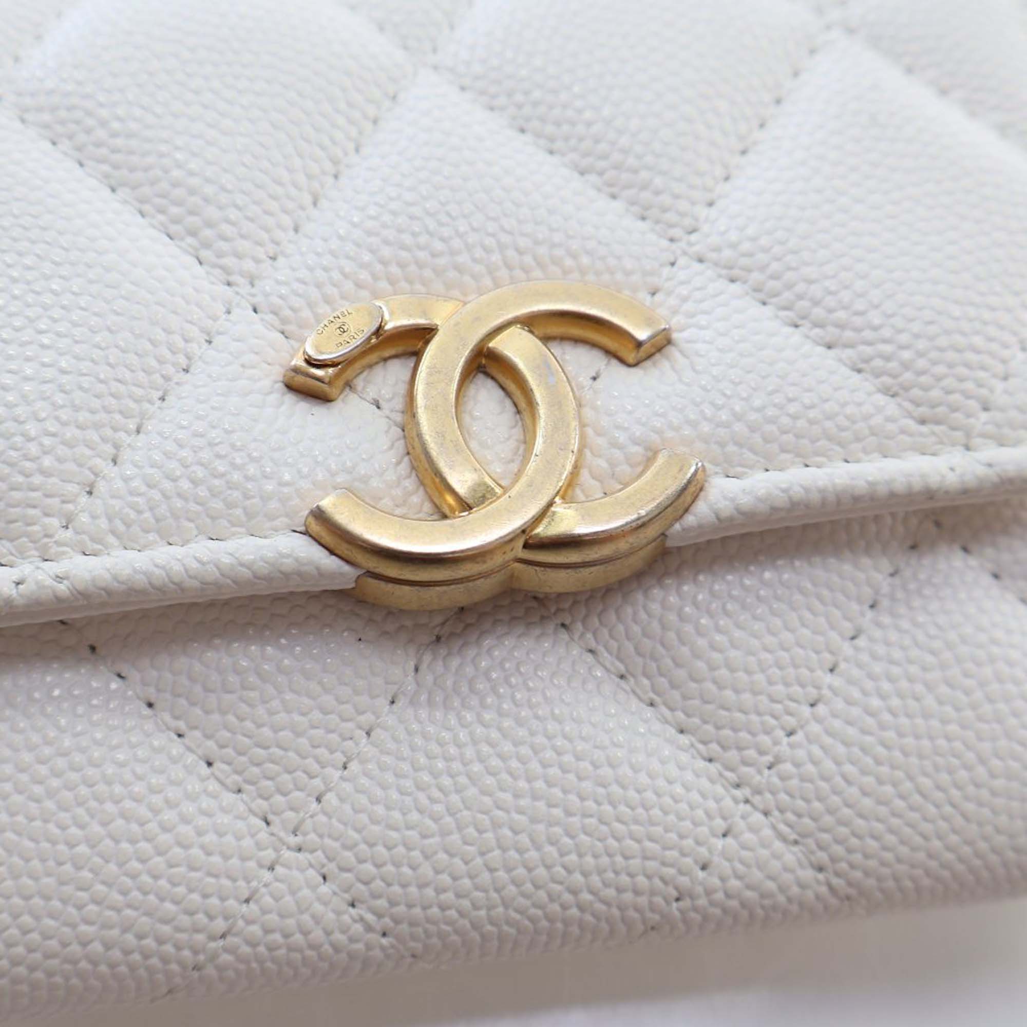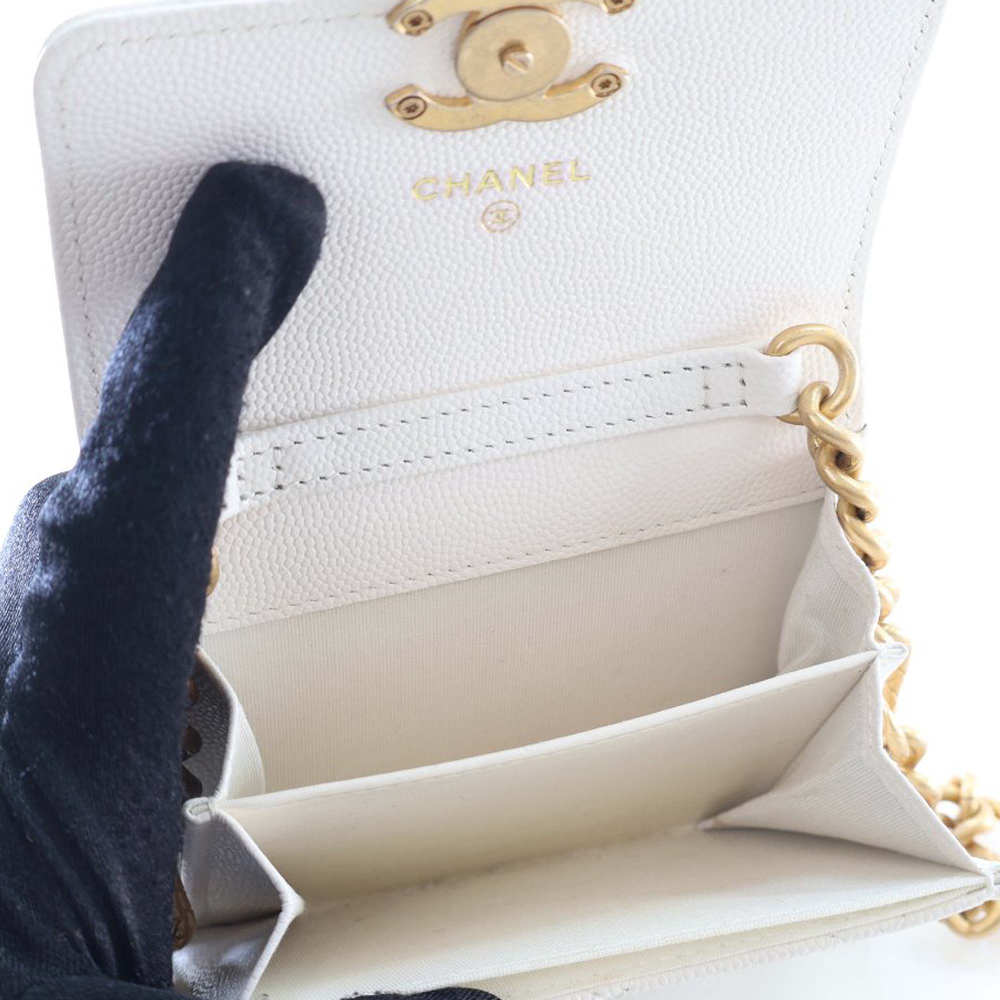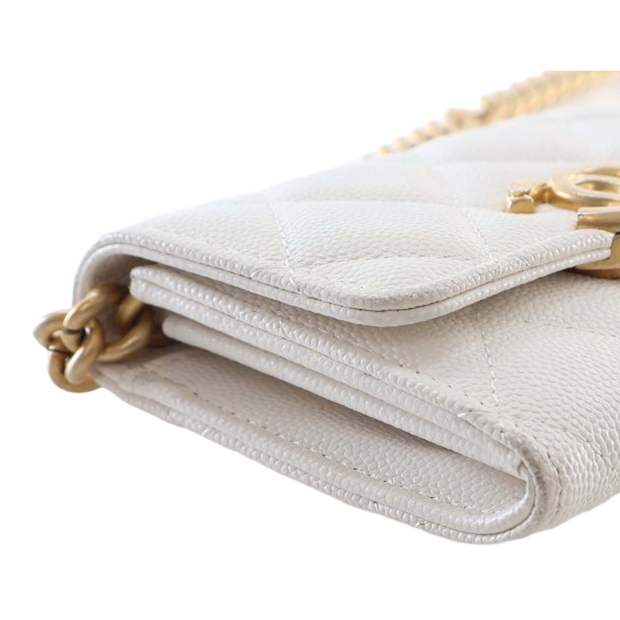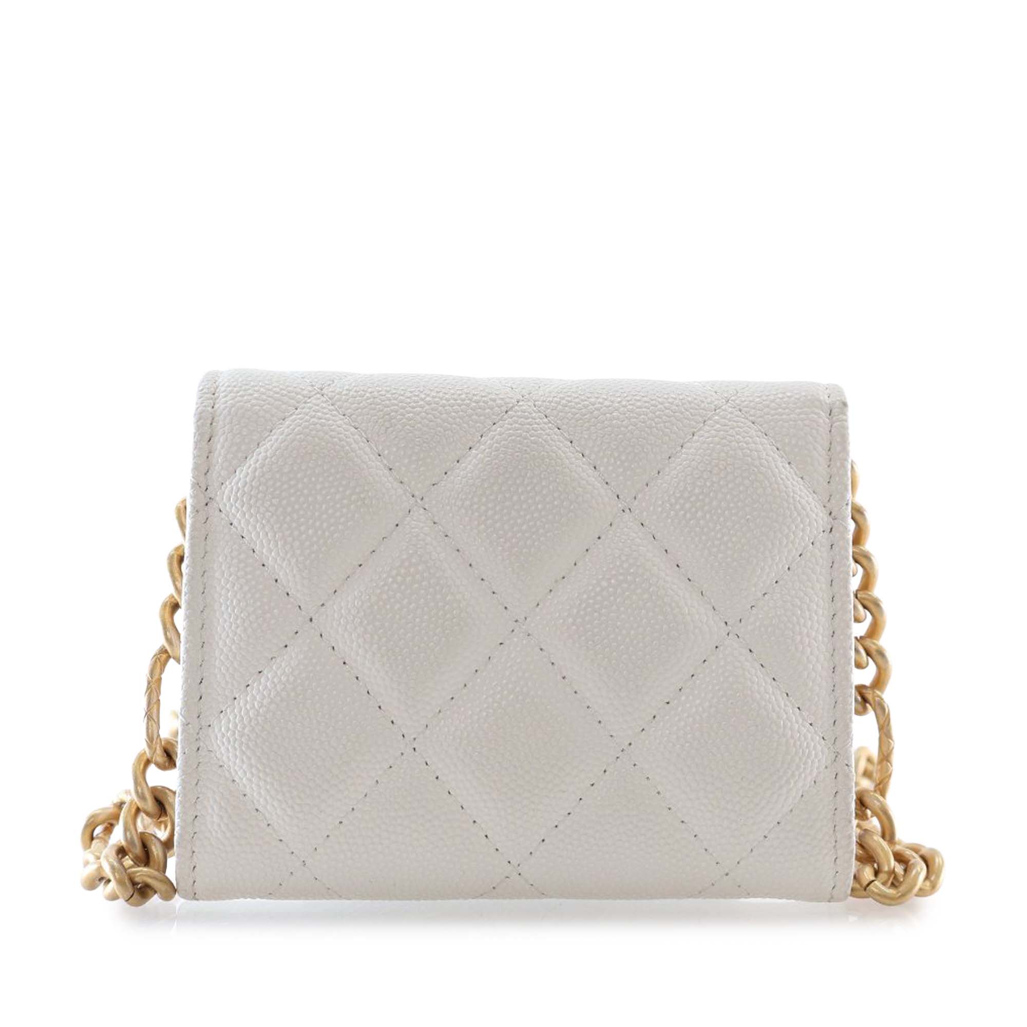 This crossbody bag features a quilted caviar leather body, a chain link strap with leather guard, and a flap with magnetic snap closure. Inclusion: authenticity card. Retail Price: 2490.00