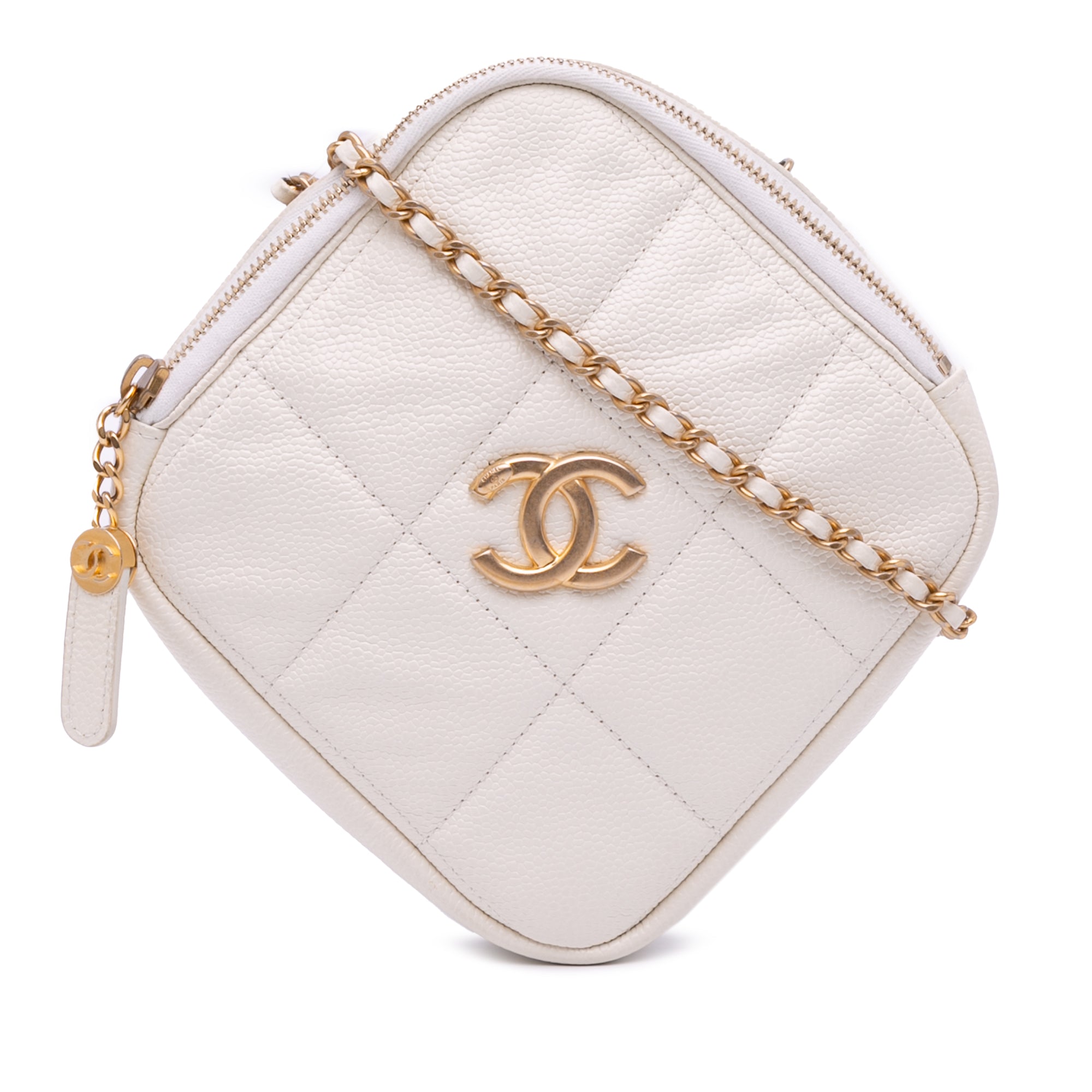 Chanel Quilted Caviar Diamond Clutch With Chain