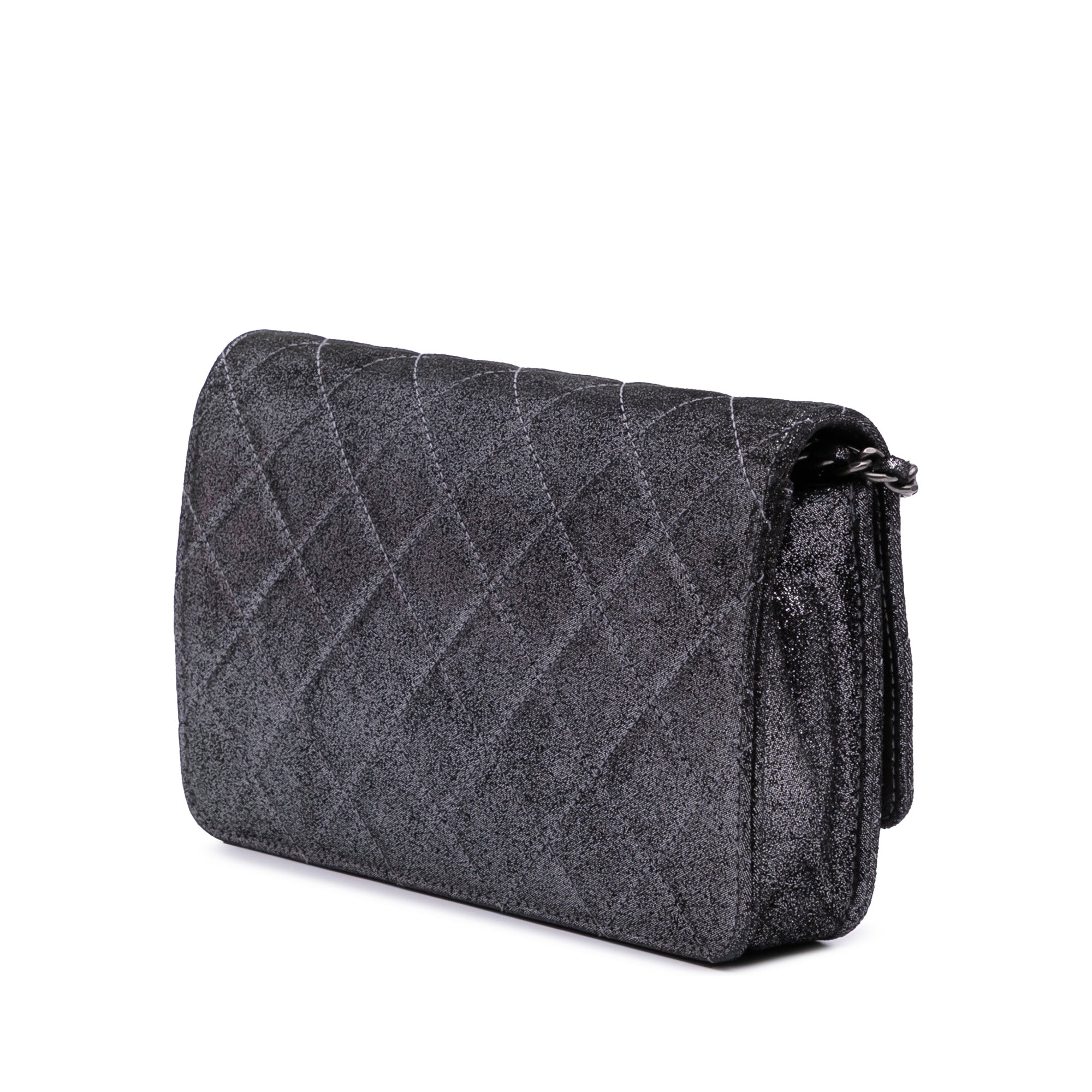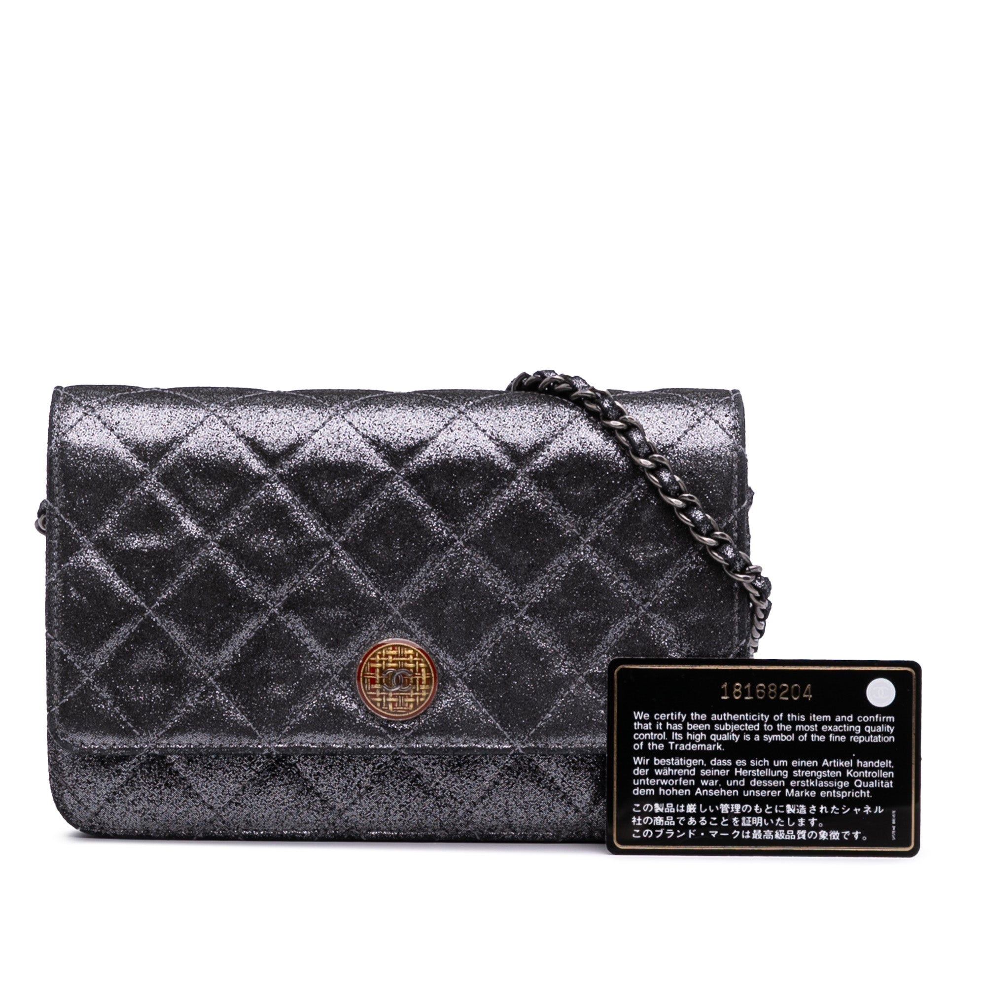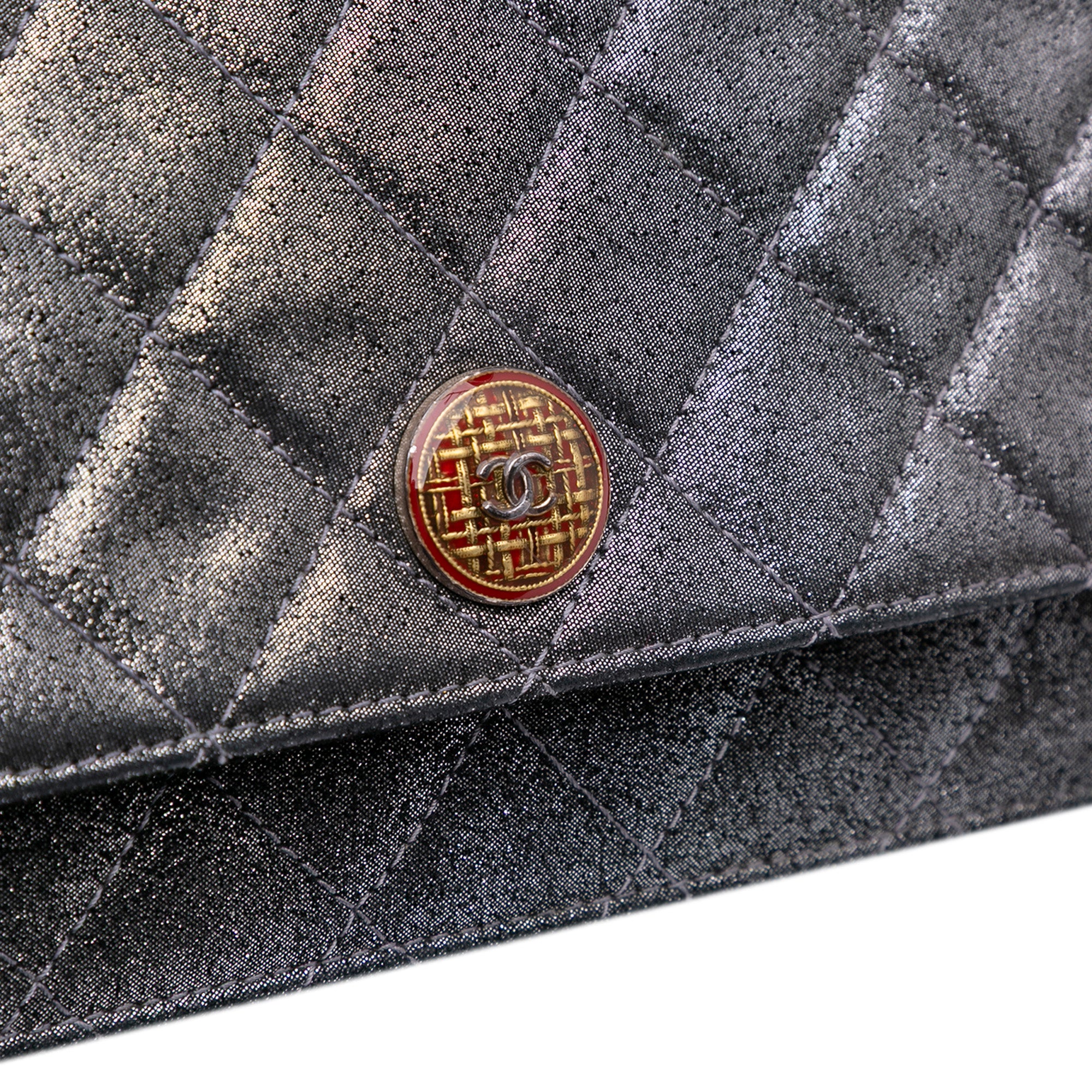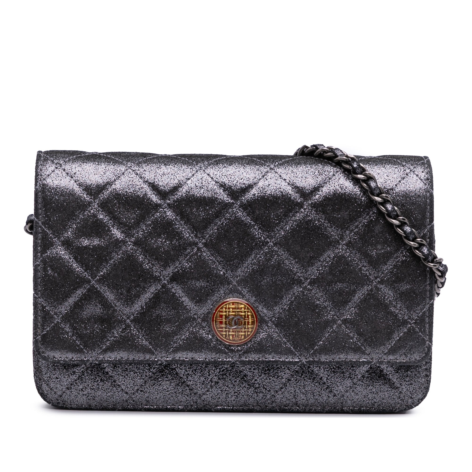 Chanel Quilted Iridescent Lambskin Tartan Button Wallet On Chain