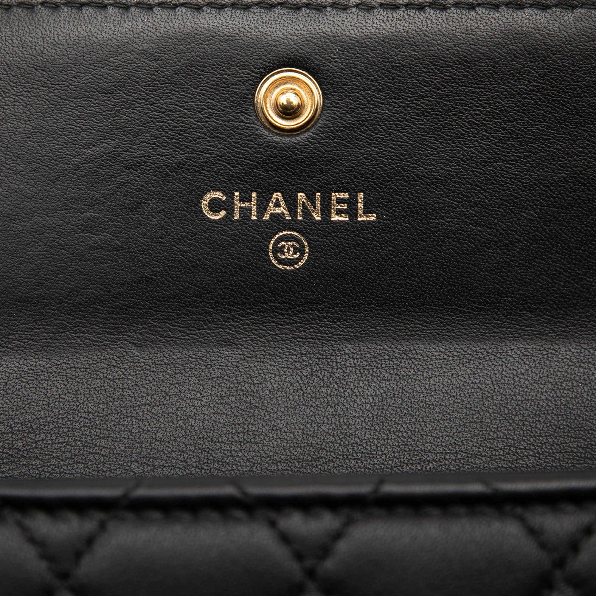 This wallet features a quilted lambskin leather body, a front flap with snap button closure, interior slip compartments and pockets, and a back exterior zip pocket. Inclusion: authenticity card. Retail Price: 1245.00