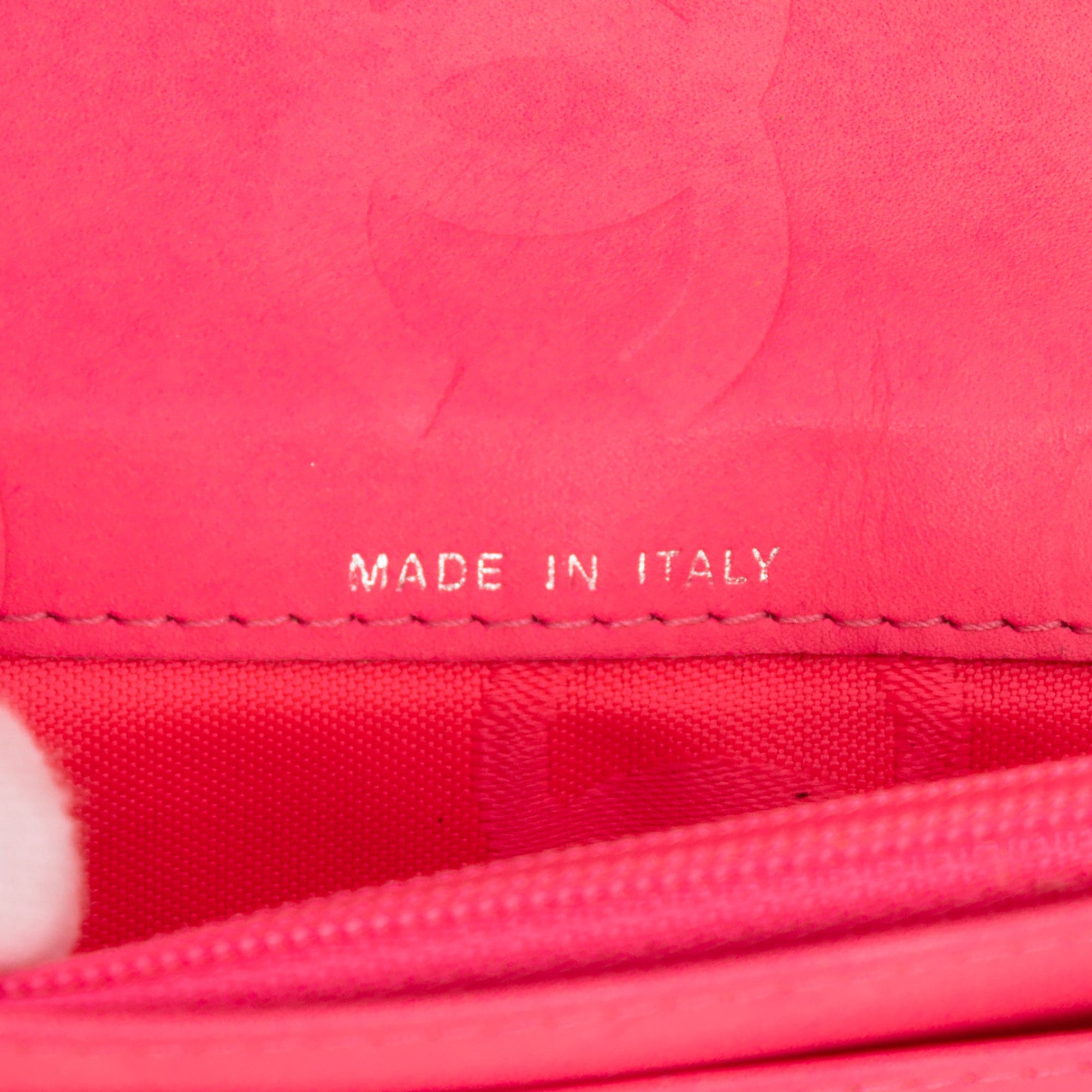 This wallet features a quilted lambskin leather body, and interior zip and slip pockets. Retail Price: 1670.00