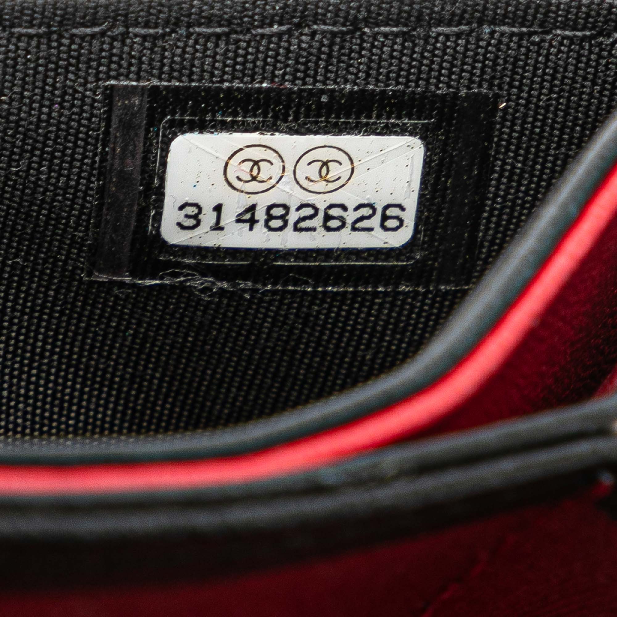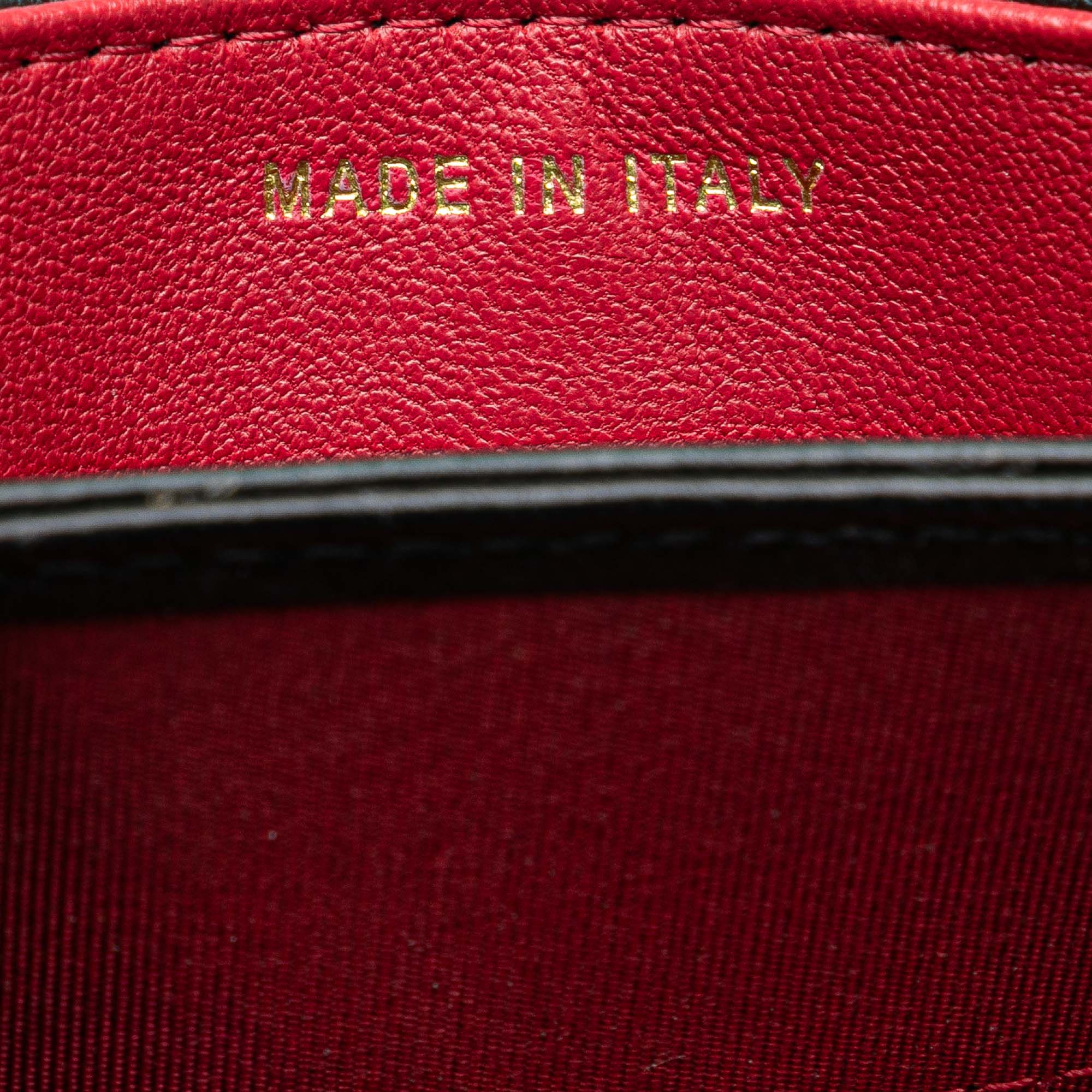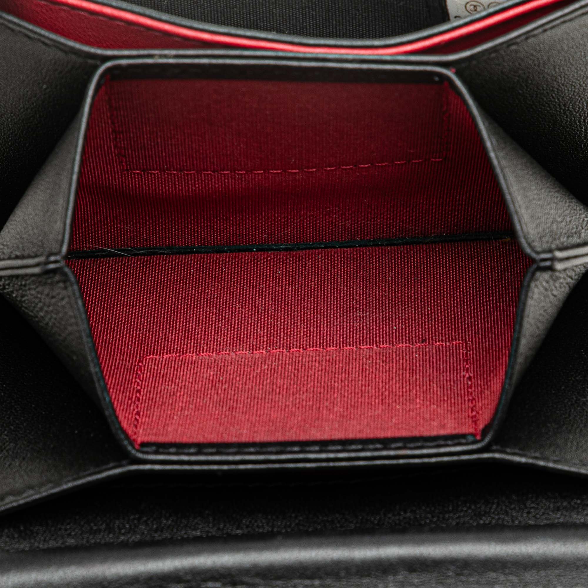 This satchel features a quilted lambskin leather body, a faux pearl crown top handle, a woven leather chain strap, a front flap with magnetic button closure, and interior slip compartments. Inclusion: Dust bag, authenticity card. Retail Price: 4750.00